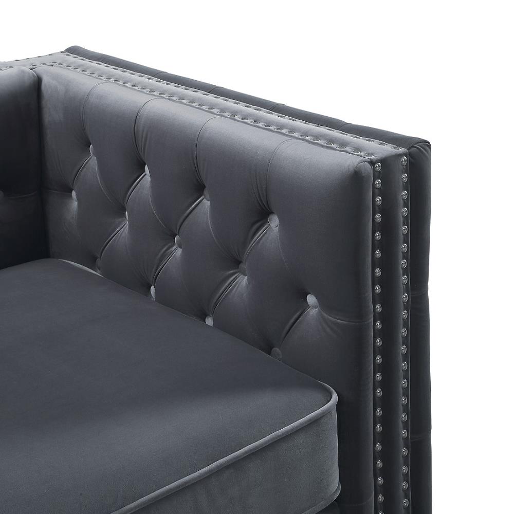 • Features: 1 Pillow, Button Tufted, Nailhead Trim (Arms, Back)