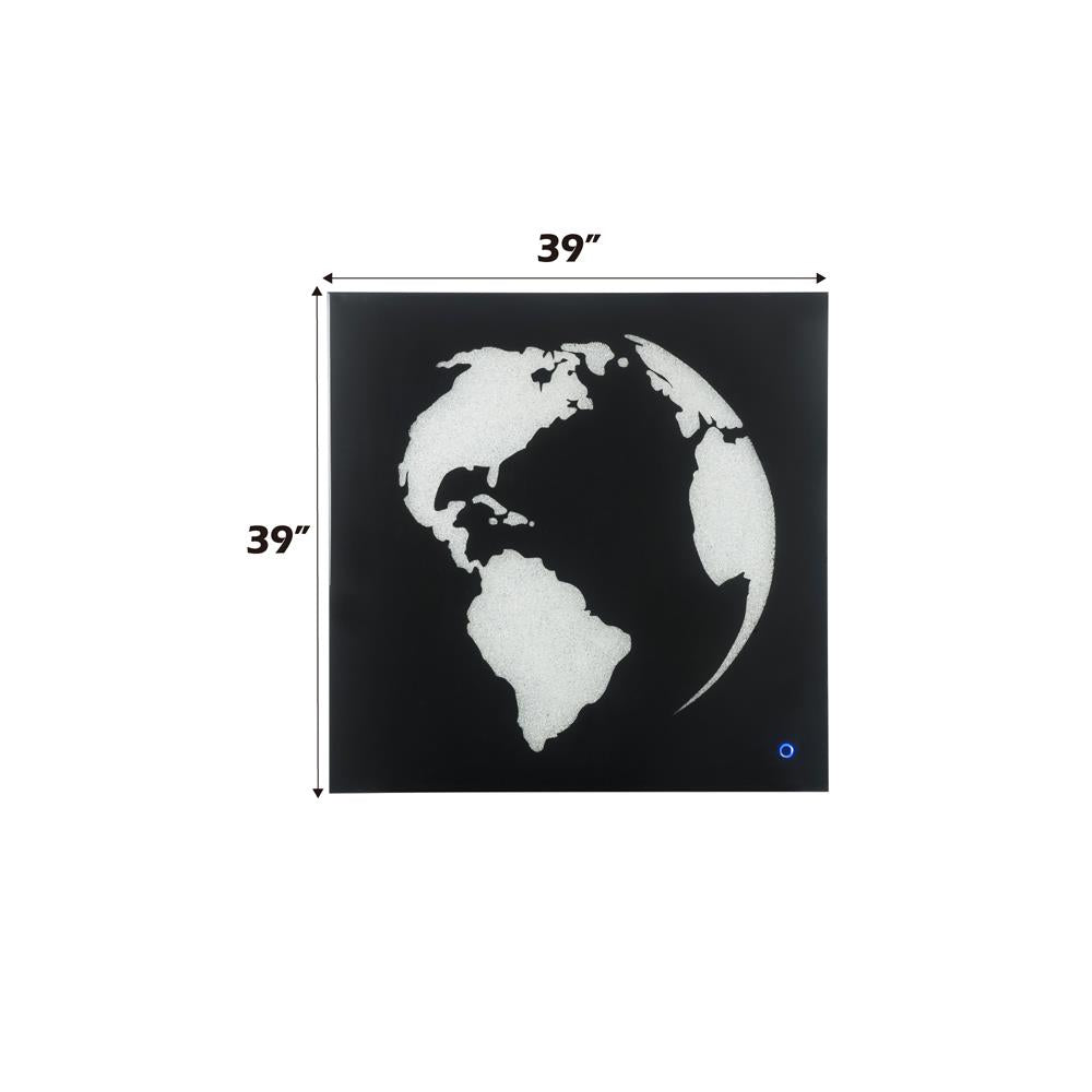 Wall art w/LED lights. Yeah, you heard that right. Step up the surroundings of your home with this incredible Adamas collection of inspiring art featuring LED touch lighting. The high-quality faux crystal world pattern encased glass frame. At night, you can turn on and off the LED function. A glam display table that naturally attracts the eye.