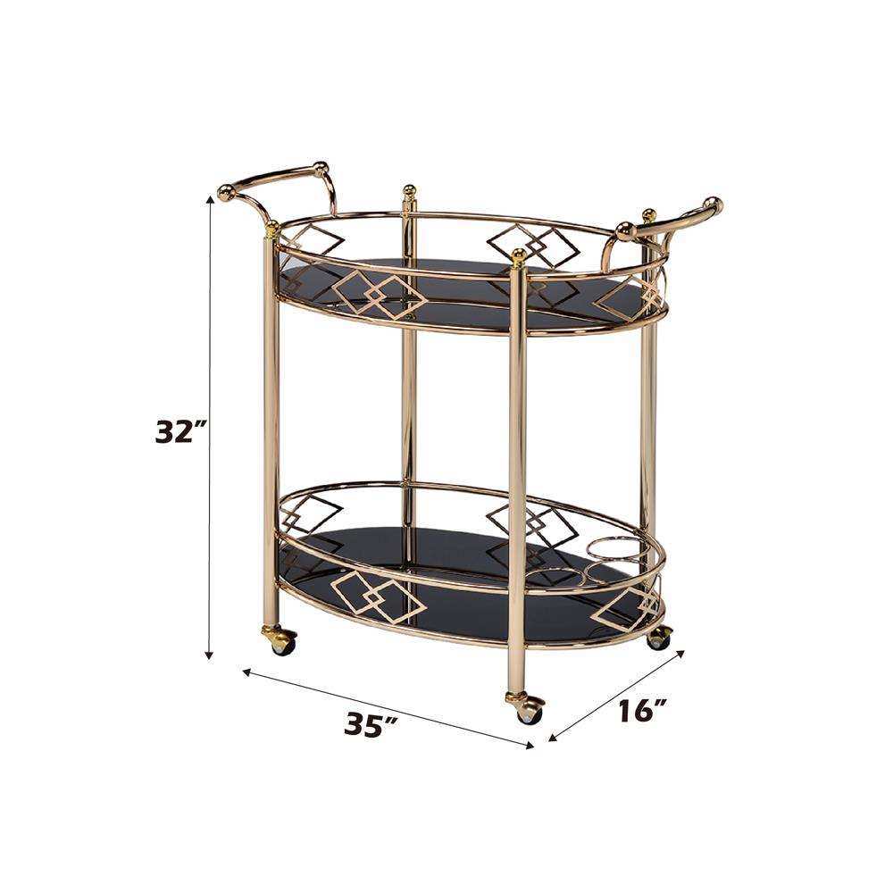 Serving Cart, Storage: Open Compartment, Glass Top: 5mm Tempered, Metal Frame, Caster Wheels