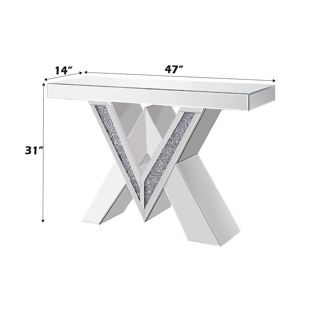 • Mirrored "V" Shape Pedestal Base: Faux Diamonds Inlay & 4mm Clear Tempered Glass w/Beveled Edge, MDF
