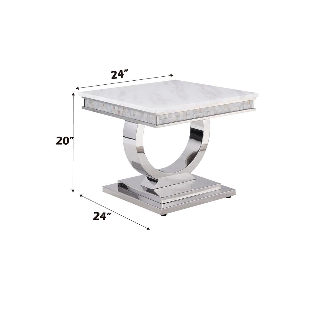White Printed Faux Marble Top & Mirrored Silver Finish