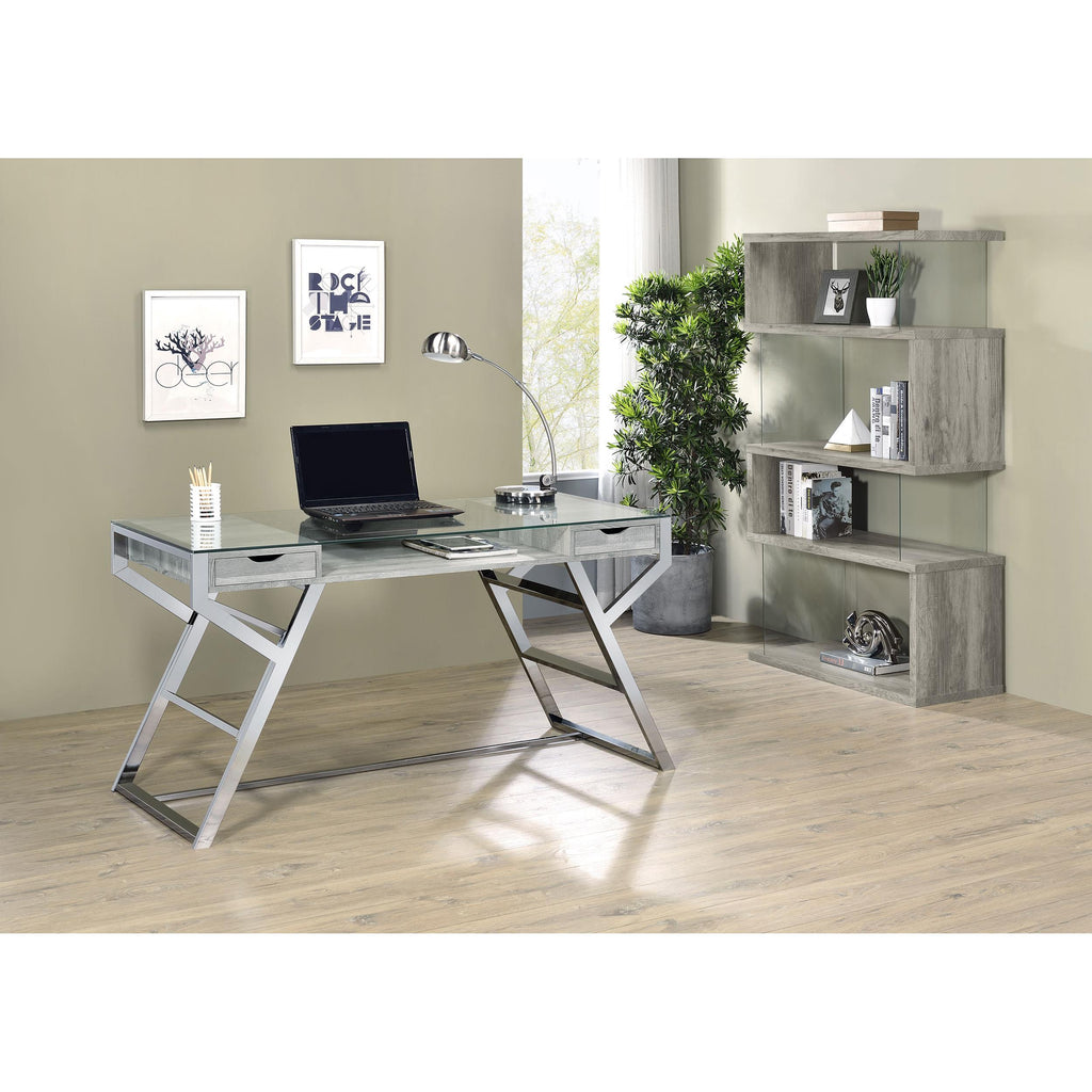 Coaster Furniture Emelle 802340 63-inch 4-shelf Glass Panel Bookshelf - Grey Driftwood