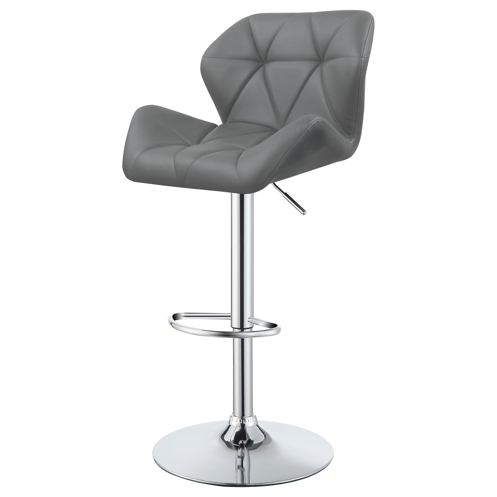 • Gorgeous grey bar stool with adjustable height and sturdy metal base with chrome finish and round foot pedestal for added comfort