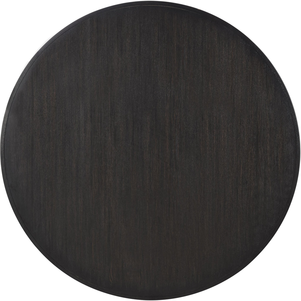 • Sixty-inch round dining table finished in burnished black for a dramatic modern presence