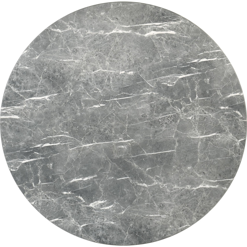 This round dining table blends sculptural minimalism with cutting-edge durability for a bold yet refined statement. Its Smart Top surface... This round dining table blends sculptural minimalism with cutting-edge durability for a bold yet refined statement. Its Smart Top surface features a revolutionary faux marble laminate that is environmentally friendly, heat resistant, break-proof, stain and scratch resistant, and effortless to maintain. The veined grey top rests on an inverted conical pedestal in a rich dark brown finish, crafted from four interlocking panels with tension lever table lock for seamless assembly. Ideal for seating four to six, it elevates any modern dining room. View more
