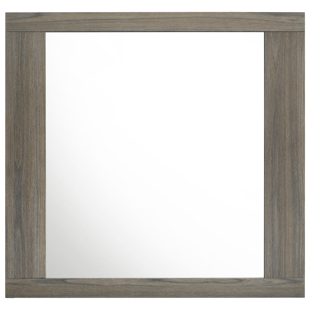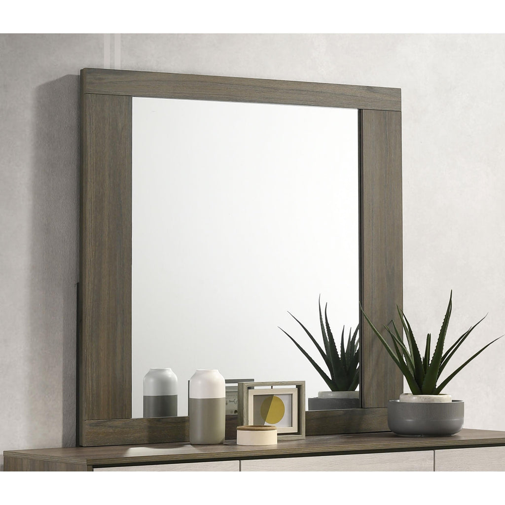 • Contemporary dresser mirror with a sleek melamine frame