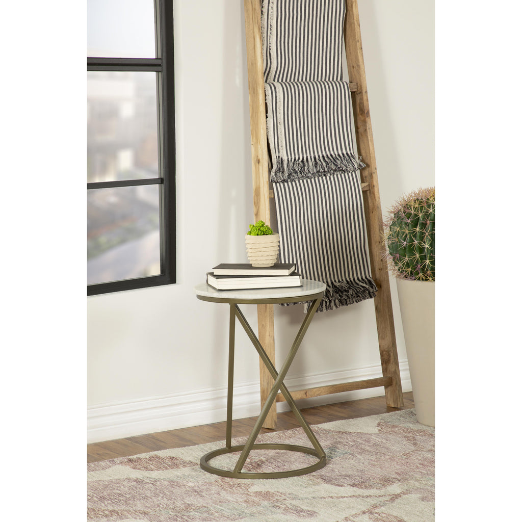 Coaster Furniture Malthe 959562 Round Accent Table with Marble Top - White/Antique Gold