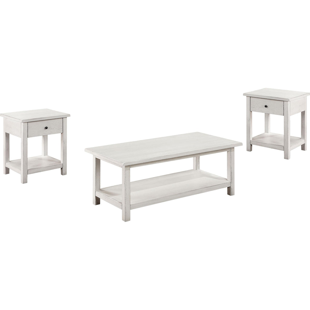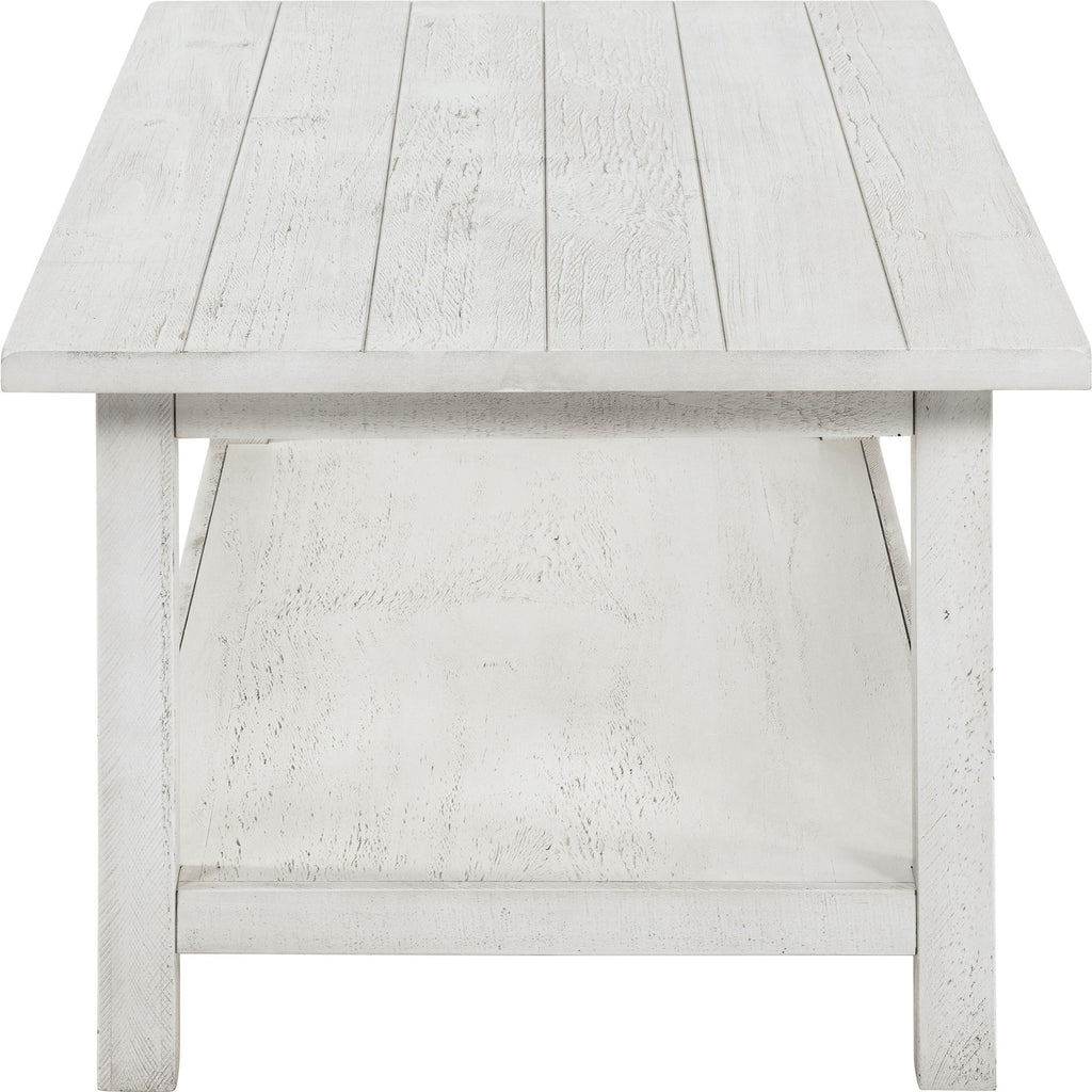 • Distressed white finish imparts a cozy, rustic flair to your décor scheme