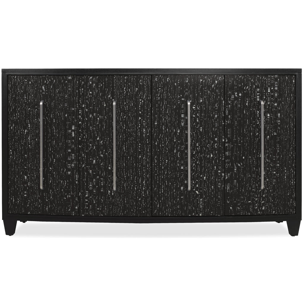 • Finish: Black finish with black and white engineered veneer door fronts. Silver hardware.