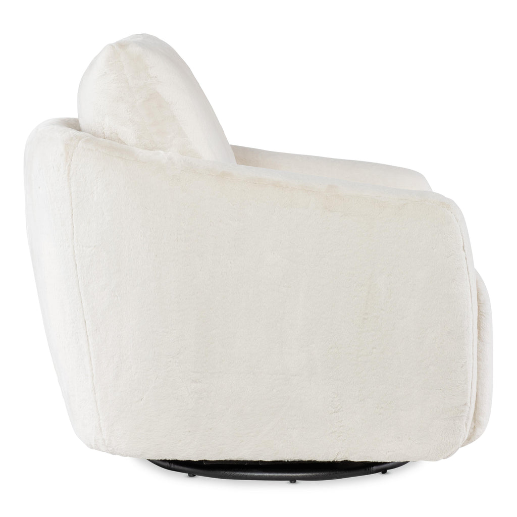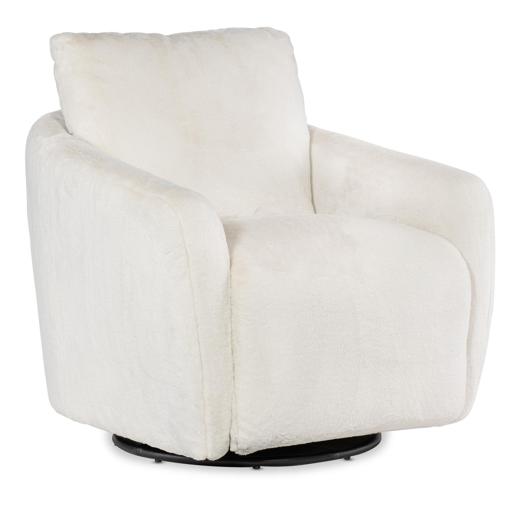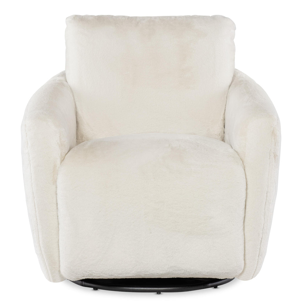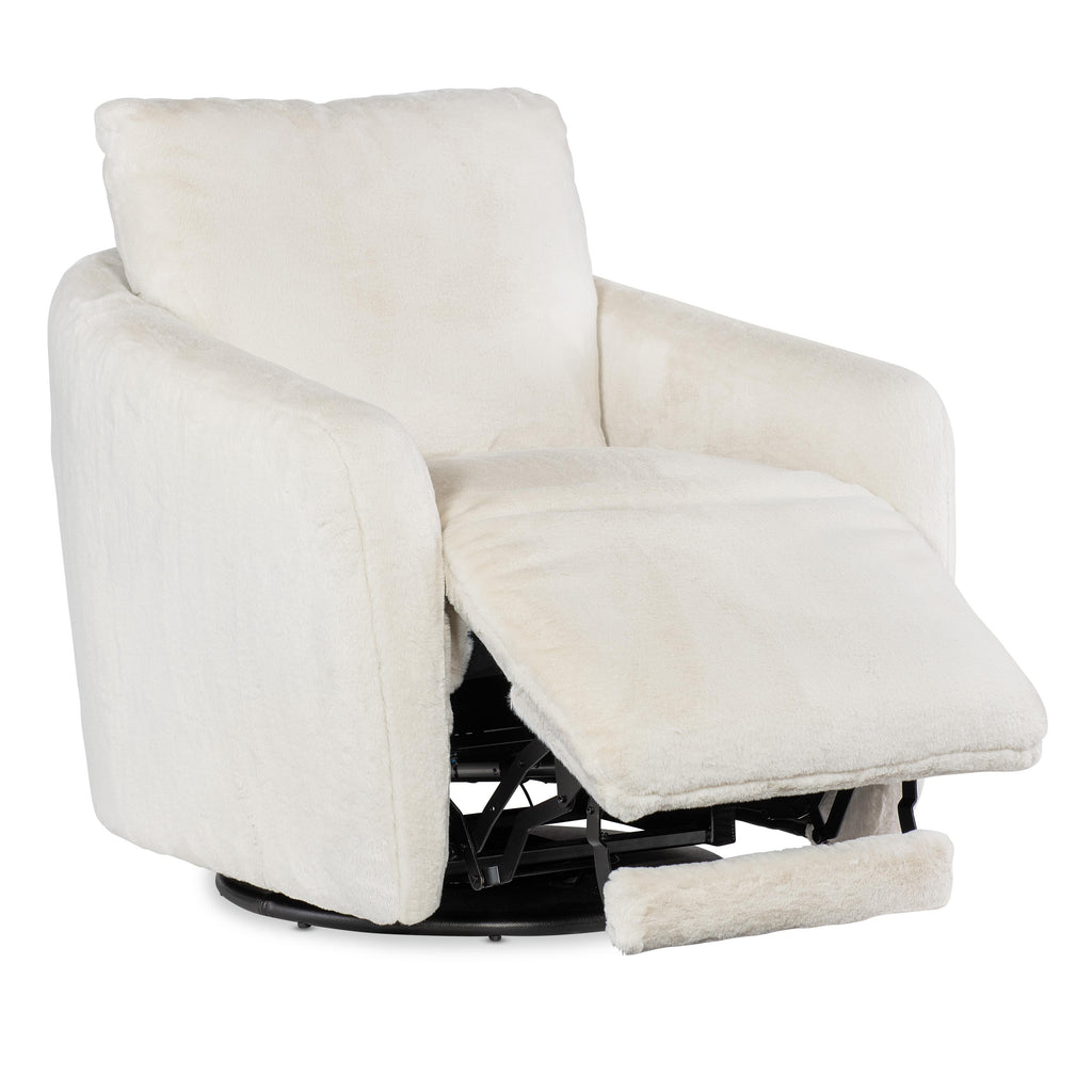 • Petitely scaled swivel chair concealing the comfort of a power footrest