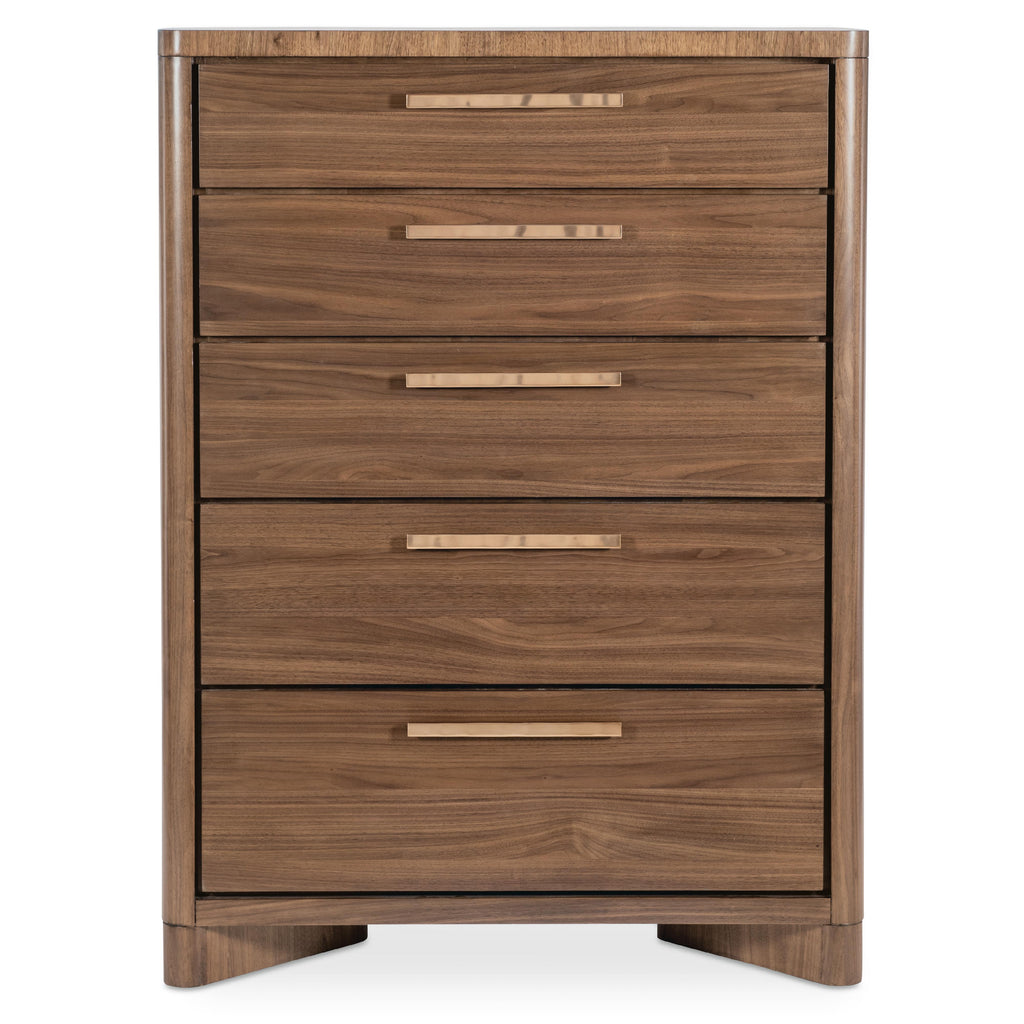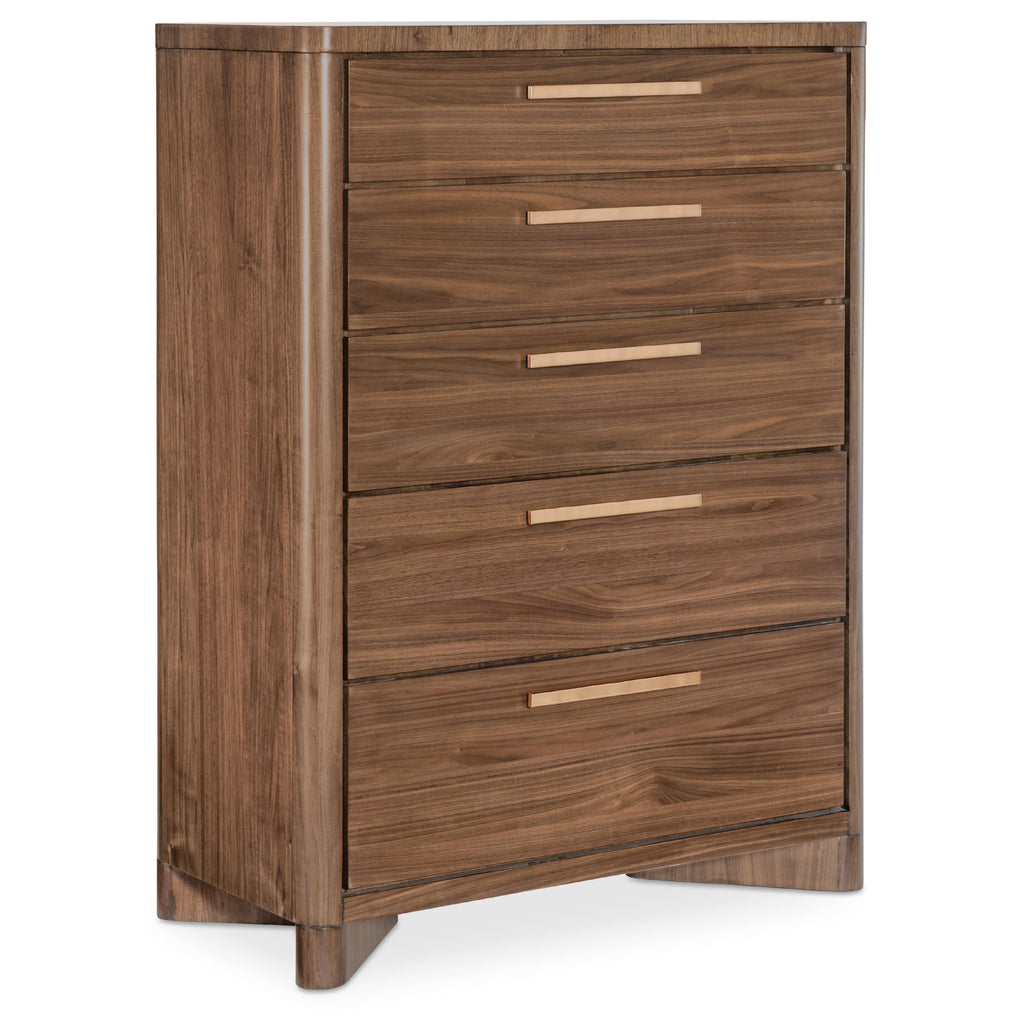 • Finish: Light Caramel finish featured on split-heart and quartered walnut veneers. Hardware featured in plated Sunlit Bronze metal finish.