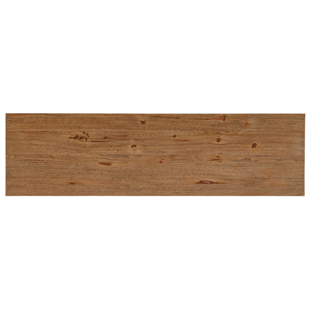 • Finish: Vintage Natural: a warm, rustic, organic finish over hickory veneers. Distressing includes chopping, rock, drawknife, gauging, chain distressing and wire brush. Dark brushed bronze bar pulls with crosshatch texture.