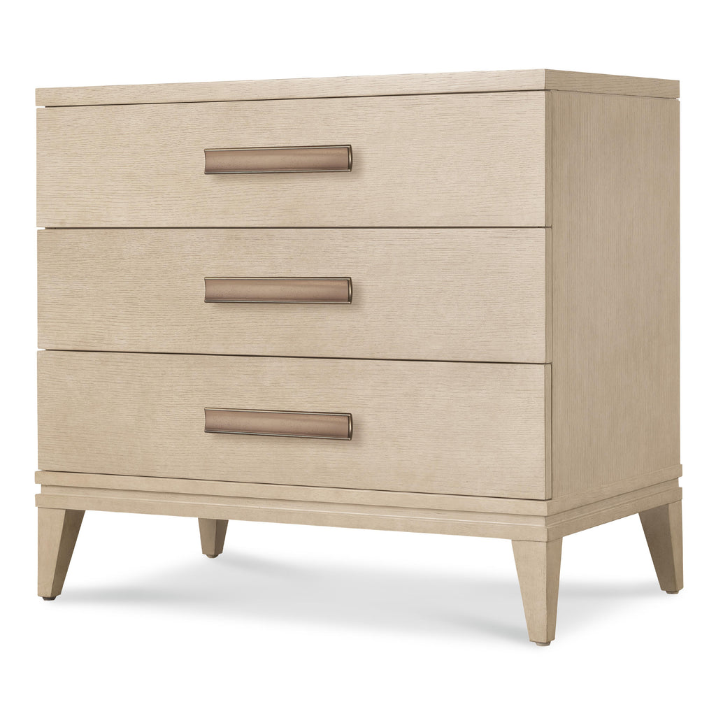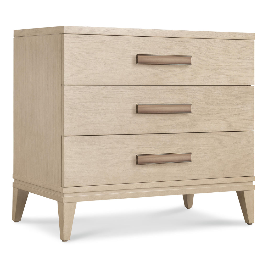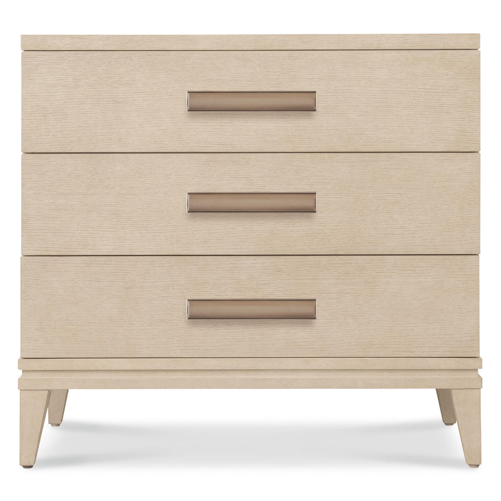 • Finish: Polished Limestone finish on quartered oak veneers. Custom bar hardware in plated Radiance finish.