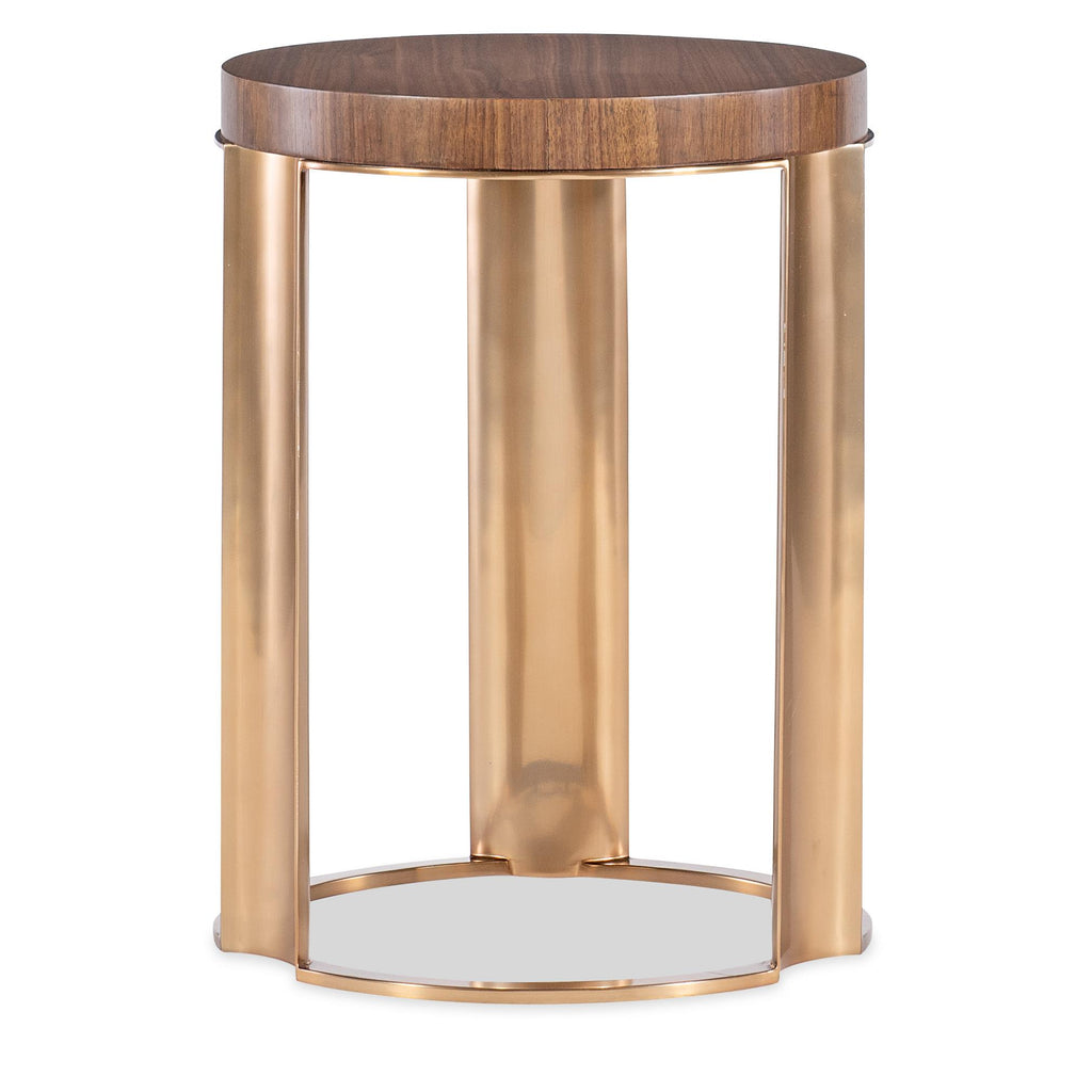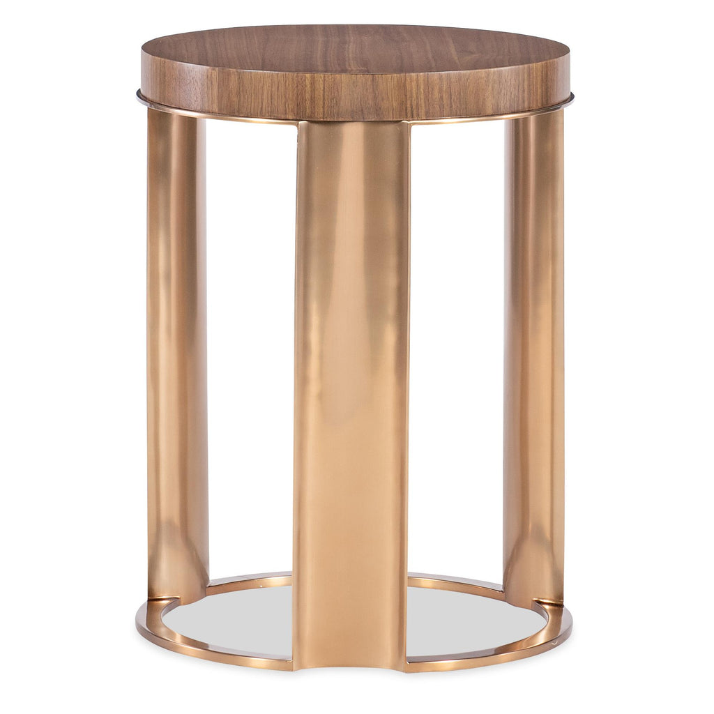 • Finish: Light Caramel finish featured on split-heart and quartered walnut veneers on the top. Metal uprights and base featured in plated Sunlit Bronze metal finish.