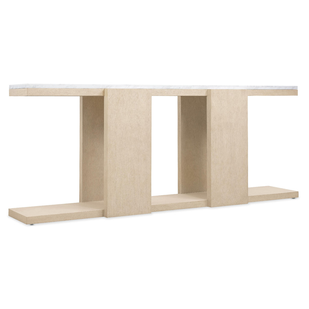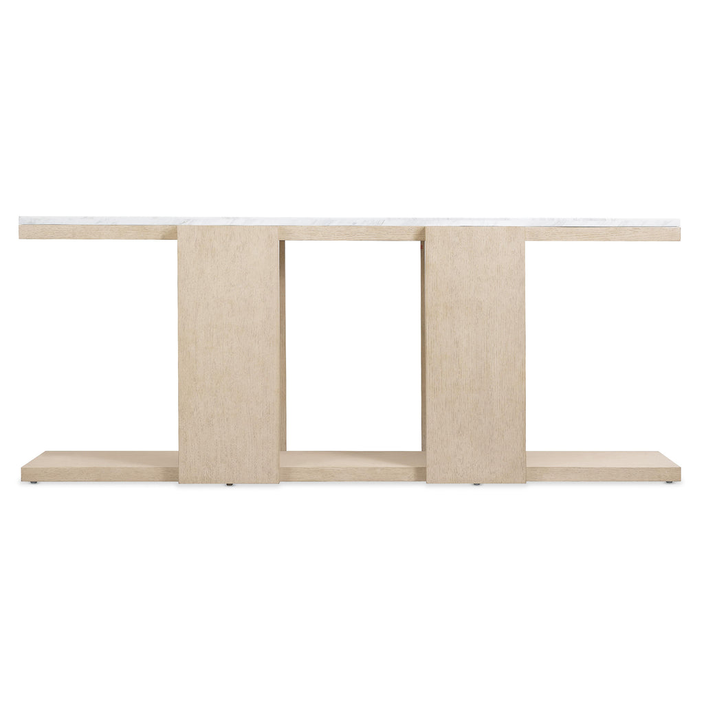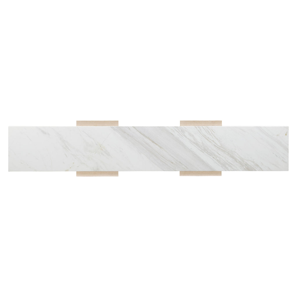 • Finish: Polished Limestone finish on quartered oak veneers. The Volakas stone top showcases a natural blend of white, gray, and other organic tones for a unique, elegant finish.