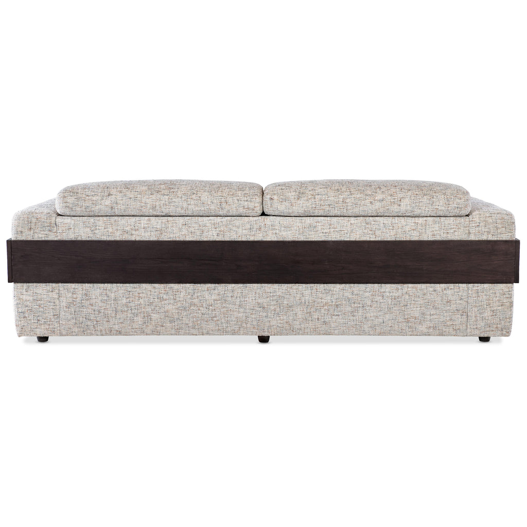 • Dark ebony finish on wood detail paired with lighter-toned fabric provides a welcomed contrast