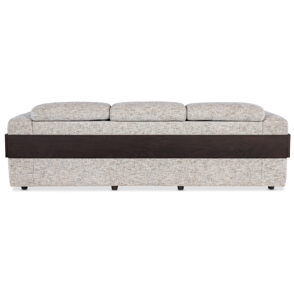 • Dark ebony finish on wood detail paired with lighter-toned fabric provides a welcomed contrast