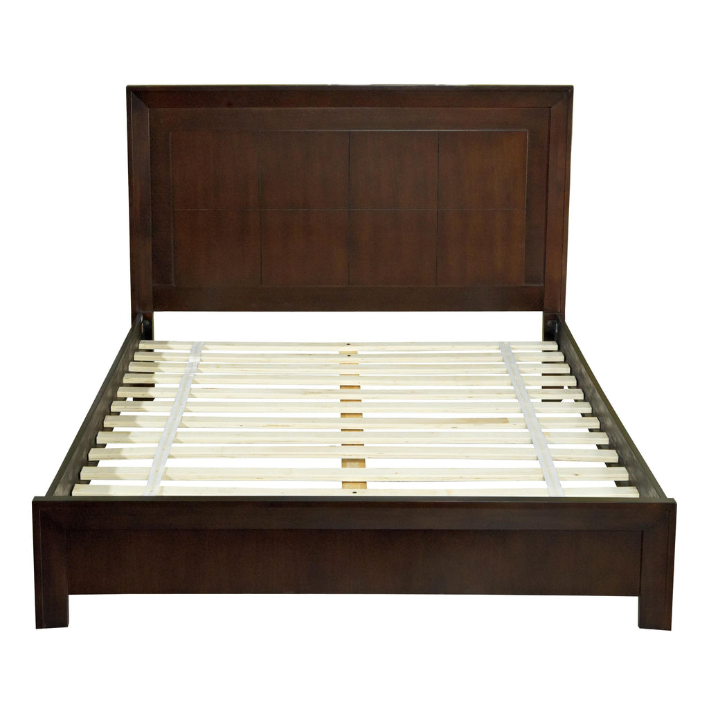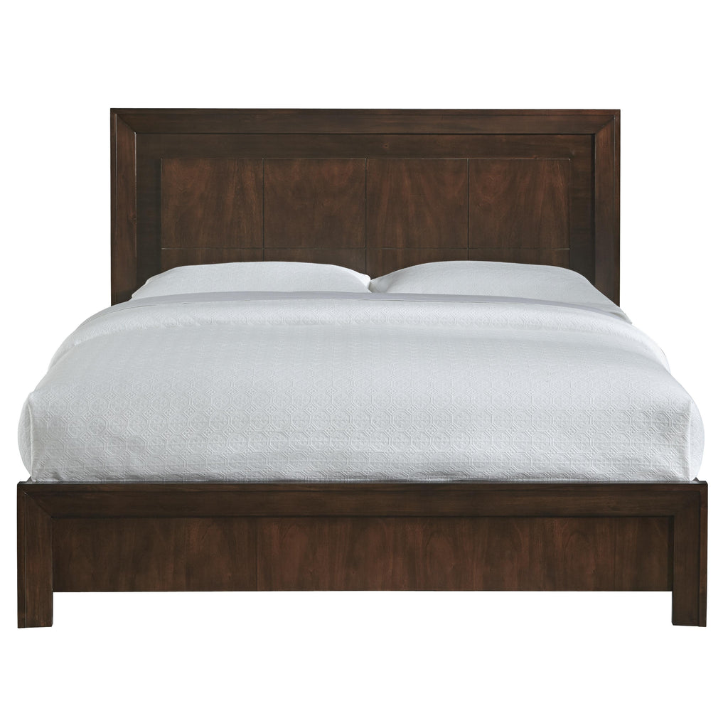 • High picture-frame headboard panel showcases geometric square insets with wood bed rails and footboard