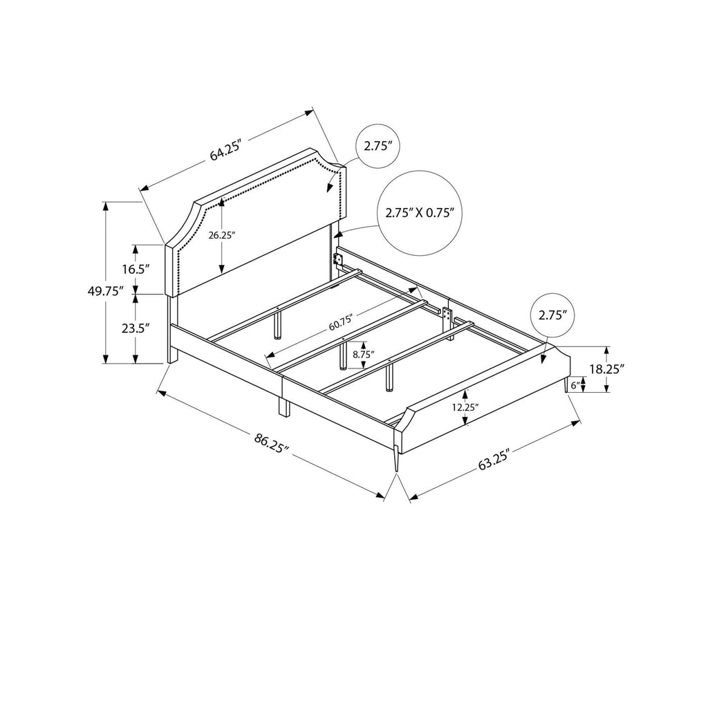 • This bed frame requires a standard queen size box spring and mattress (not included)