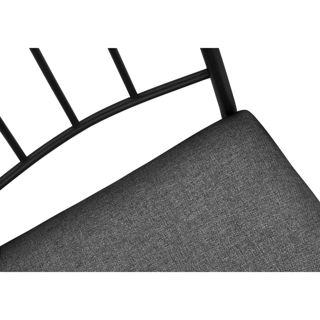 • The 4 armless chairs are upholstered in thick, grey cotton and linen mix fabric, with sturdy black metal construction complimenting the elegant table