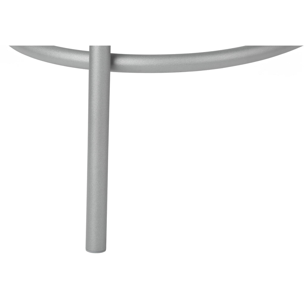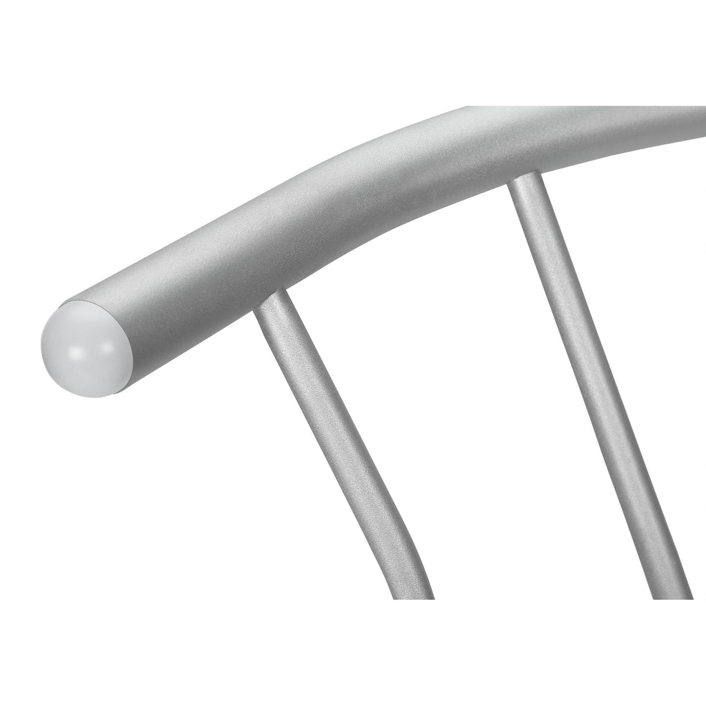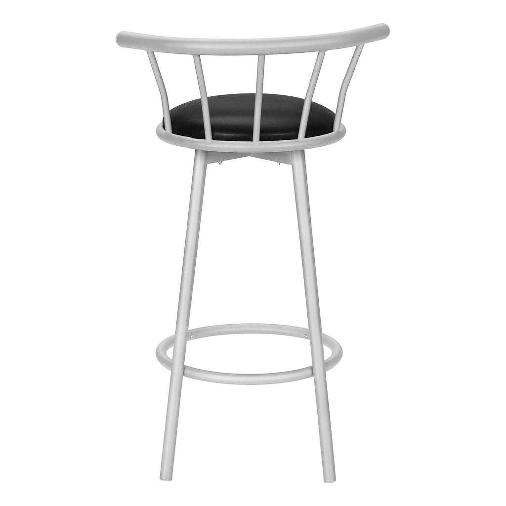 • These bar height stools have sturdy grey metal construction with a curved low back and bottom foot rest for extra comfort