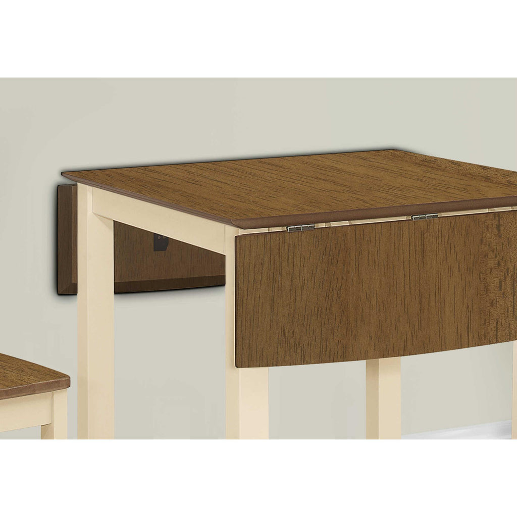• 2 drop leaves that can be lifted up to seat up to 4 people or folded down to for a cozy meal for 2
