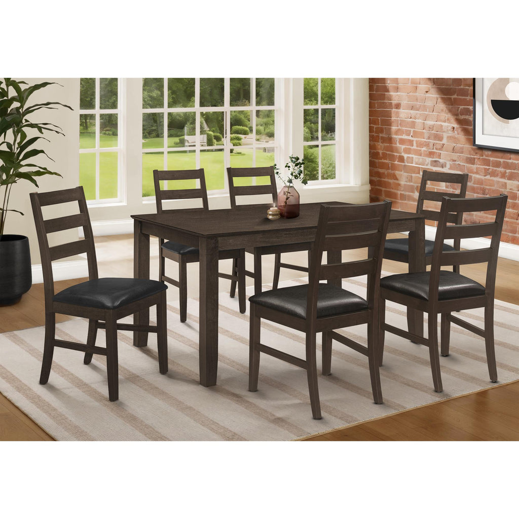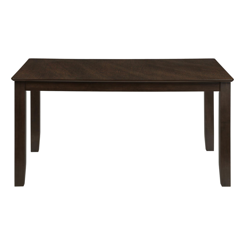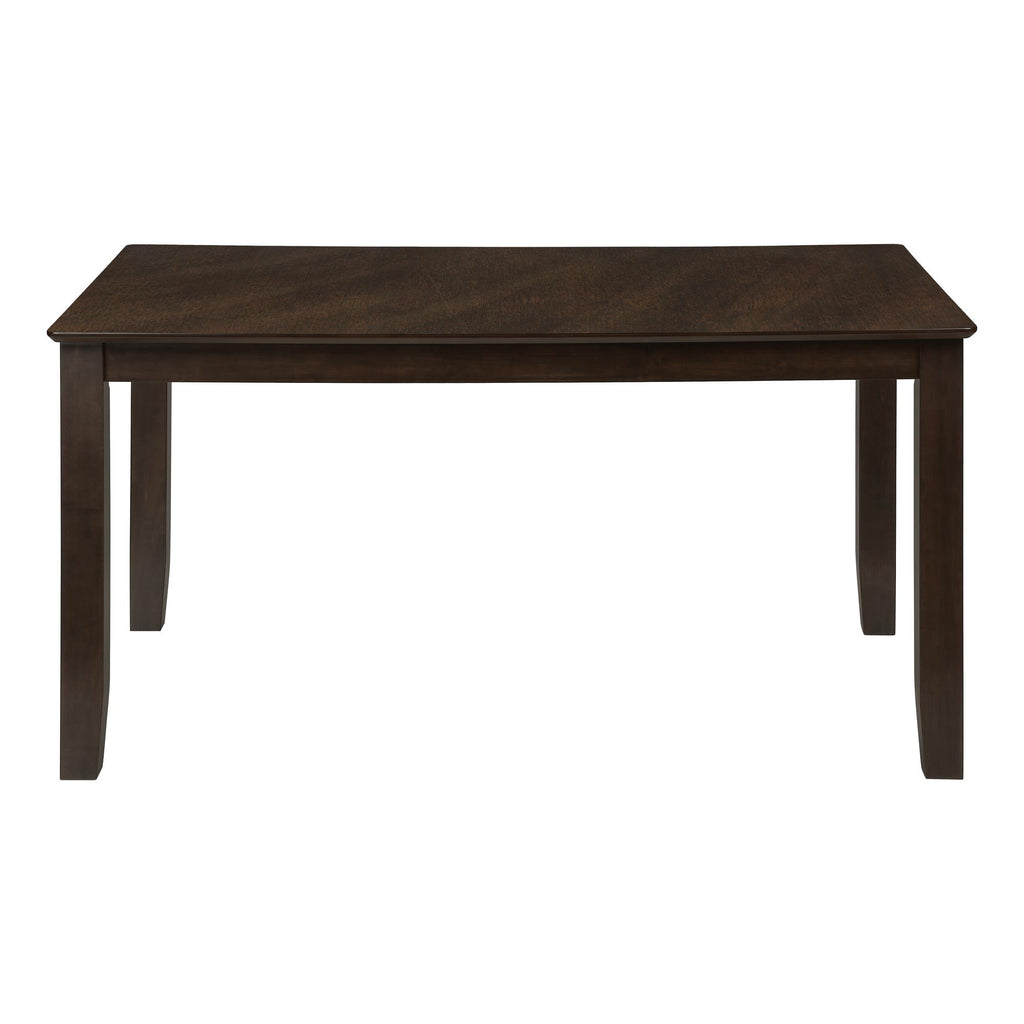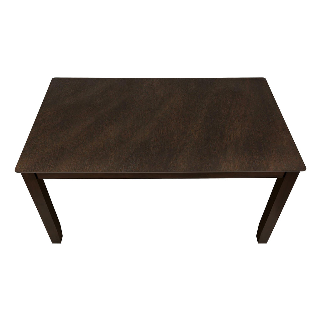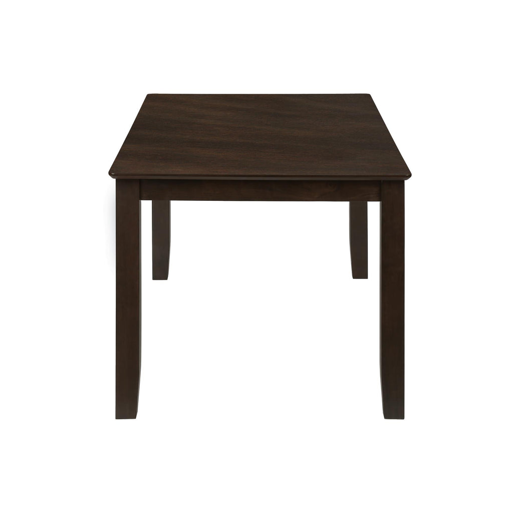 • Durably designed with sturdy solid wood legs that taper at the bottom for a fashionable style, and finished in a chic espresso brown veneer, this dining table is suitable in any decor.