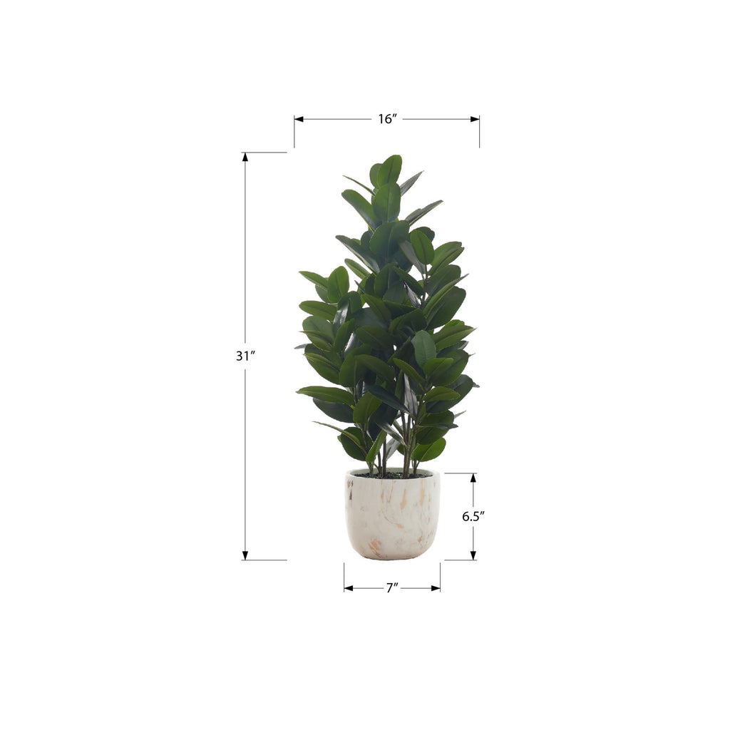 • 31" tall indoor artificial Garcinia Tree in a 7" pot adds an eye pleasing pop of greenery to any floor or surface in your home or office
