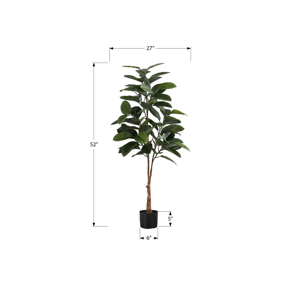 • Add a vibrant burst of greenery to any floor of your home or office with this 52" tall artificial indoor rubber tree in a 5" black pot