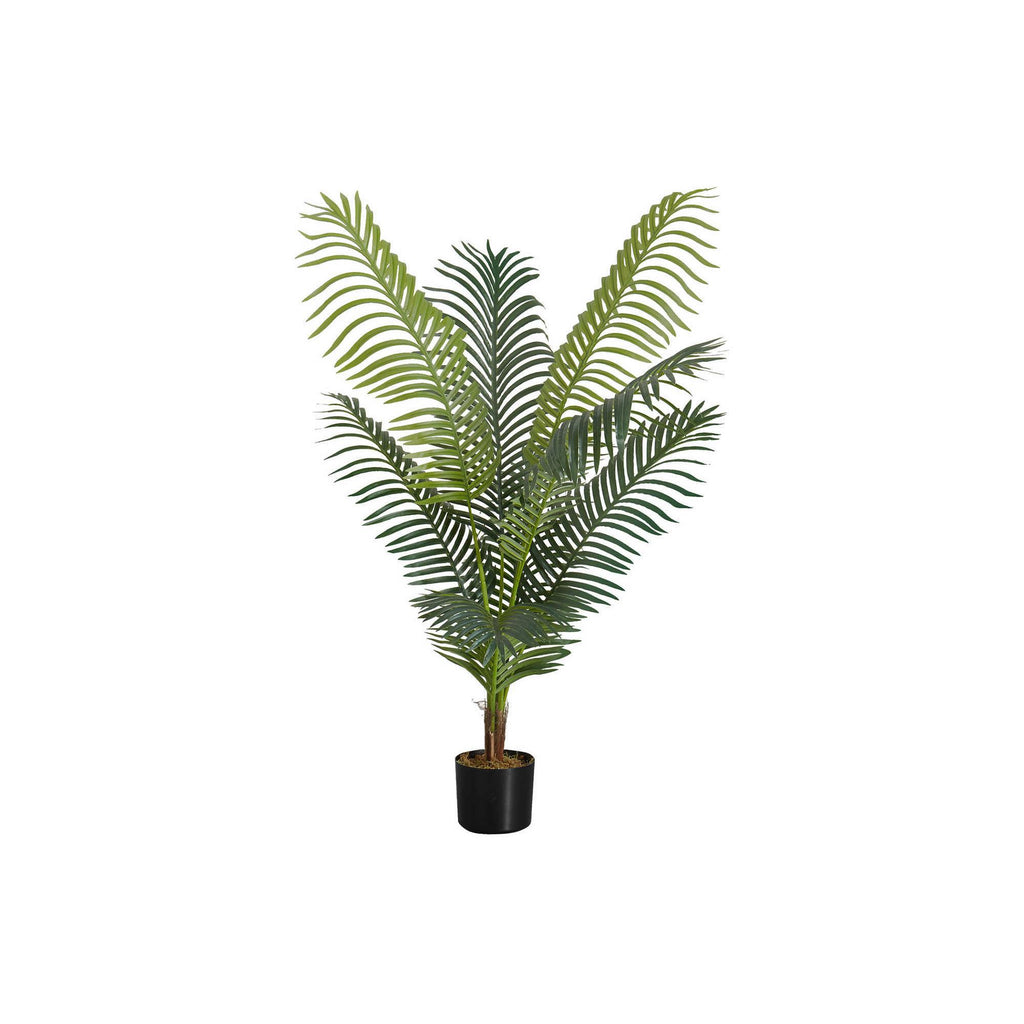 • Add a tropical burst of greenery to any floor of your home or office with this 47" tall artificial indoor palm tree in a 5" black pot