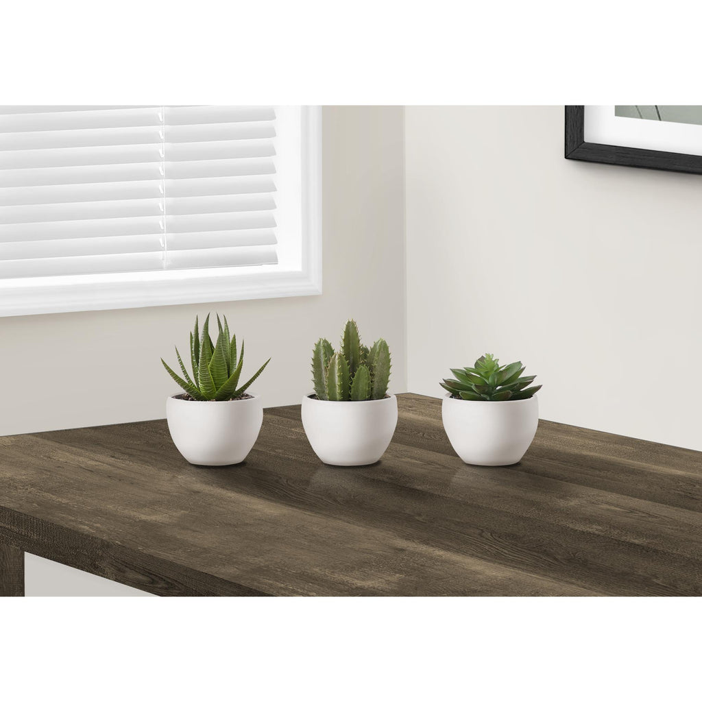 • Add a touch of greenery to your home or office with this set of 3 artificial succulent plants that stand up to 6" tall