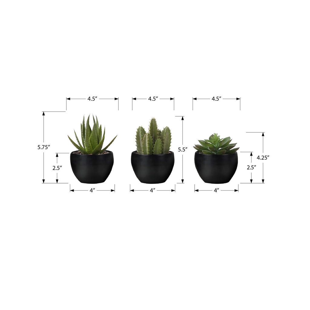 • Add a touch of greenery to your home or office with this set of 3 artificial succulent plants that stand up to 6" tall