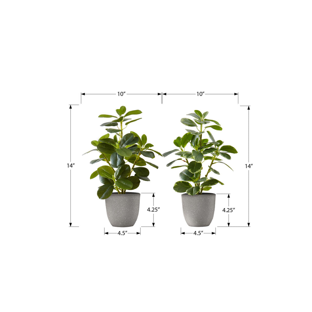 • Standing at 14" tall add this set of 2 artificial Ficus Elastica potted plants to bring some greenery to your indoor space