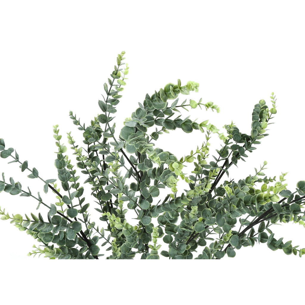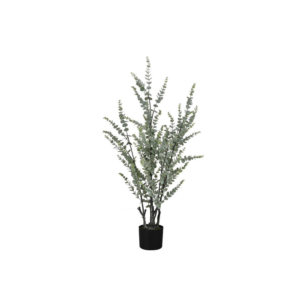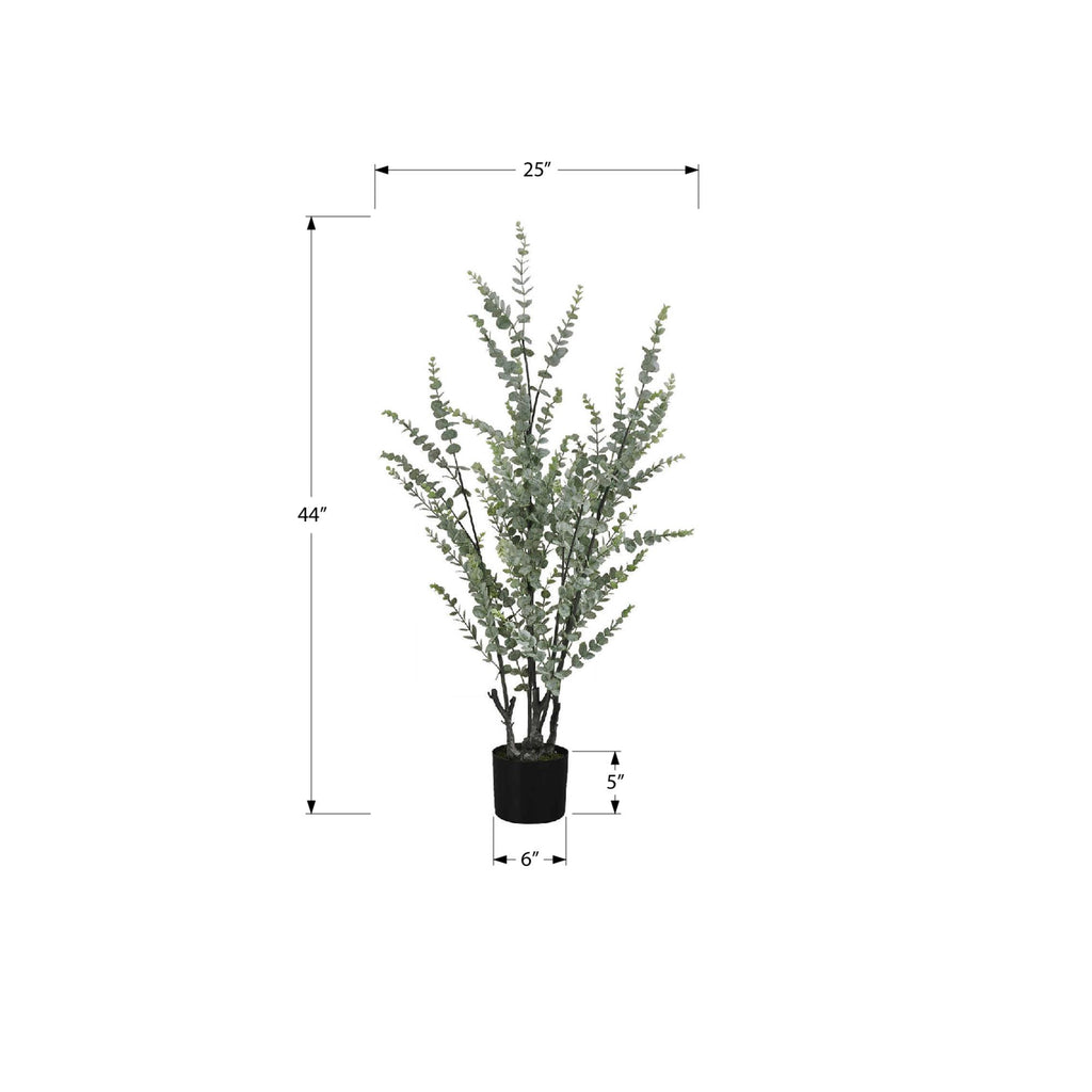 • Create your own oasis with this 44" tall artificial Eucalyptus floor plant set in a stylish black pot