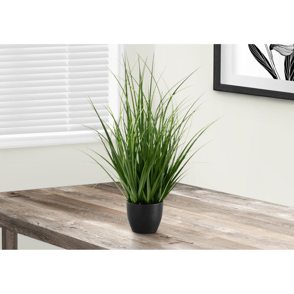 • Add some greenery to your space with this 23" Tall artificial grass plant that is set in a 4" black pot