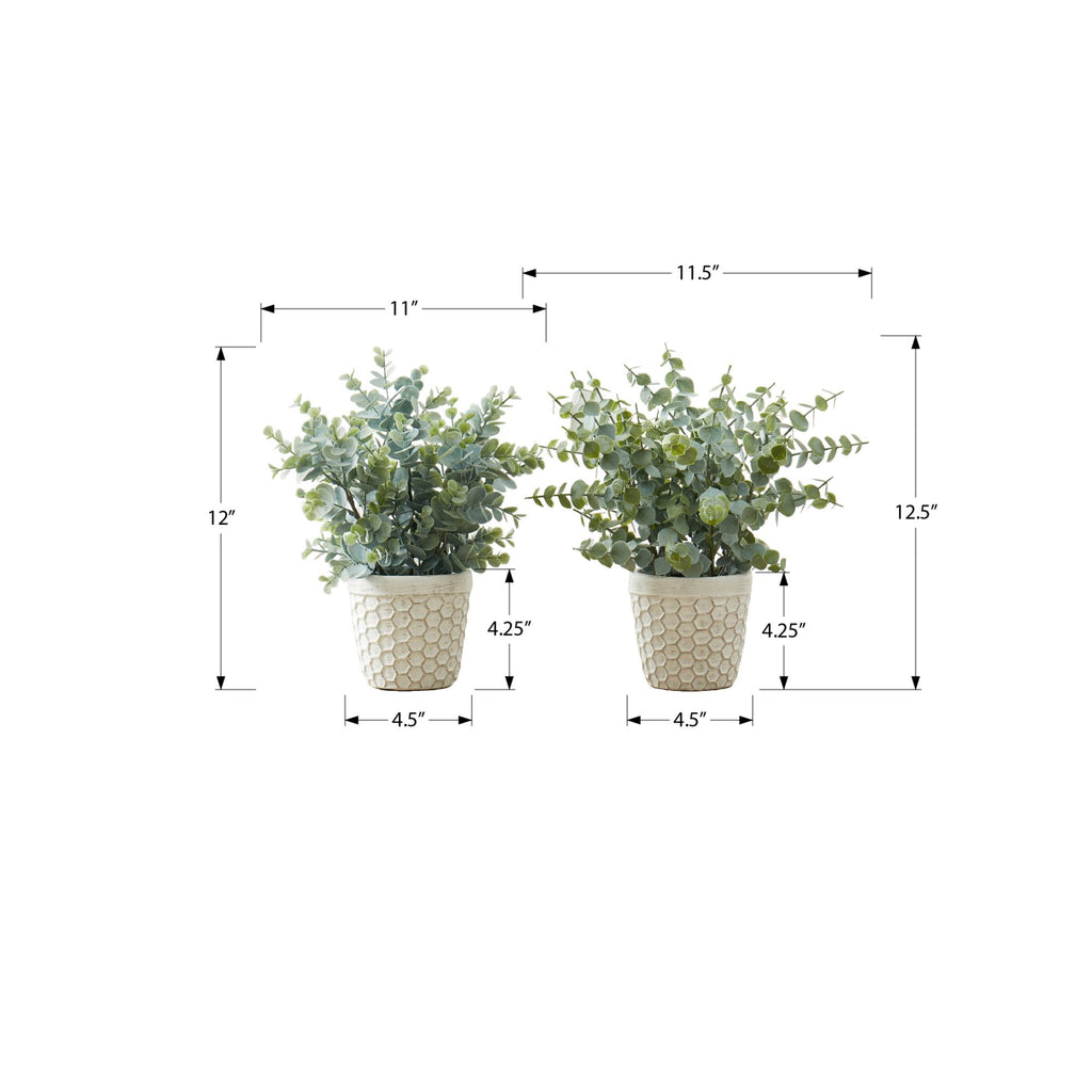 • Add a touch of greenery to your home or office space with this set of 2, indoor only artificial eucalyptus grass plants up to 13" tall