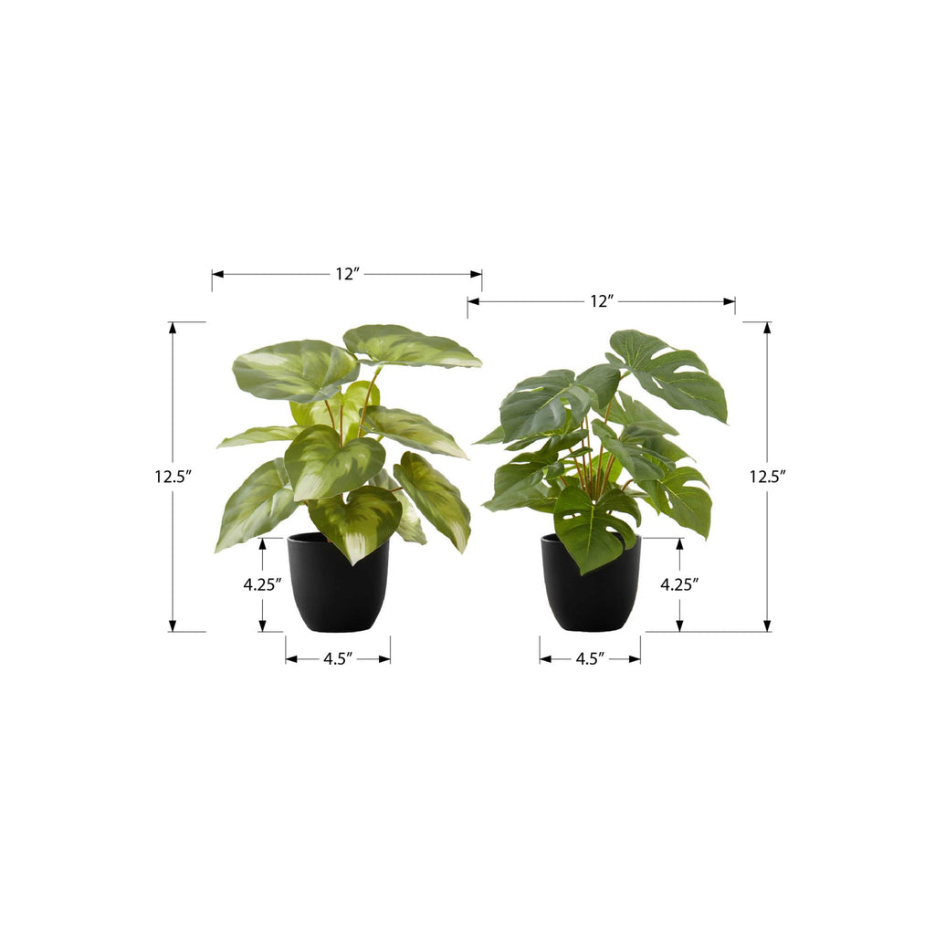 • Revitalize your indoor space with this 13" tall Monstera and Calathea artificial plant set of 2