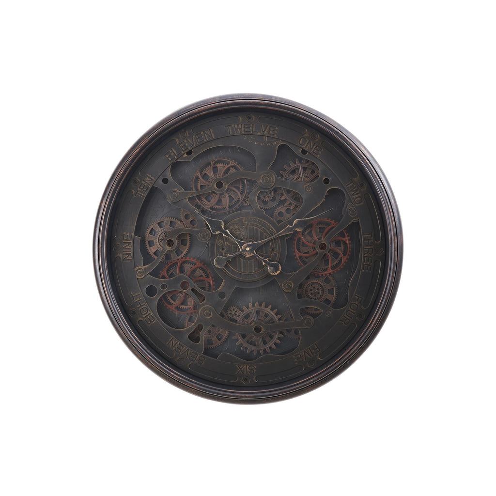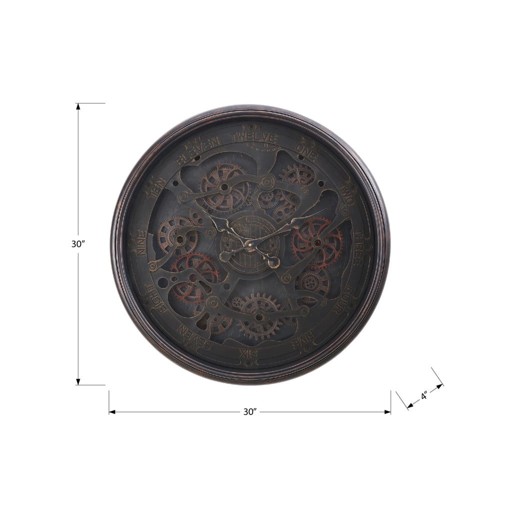 • Trendy and stylish 30" round wall clock with a striking open gear mechanism design in sleek black, perfect for a modern and transitional home decor