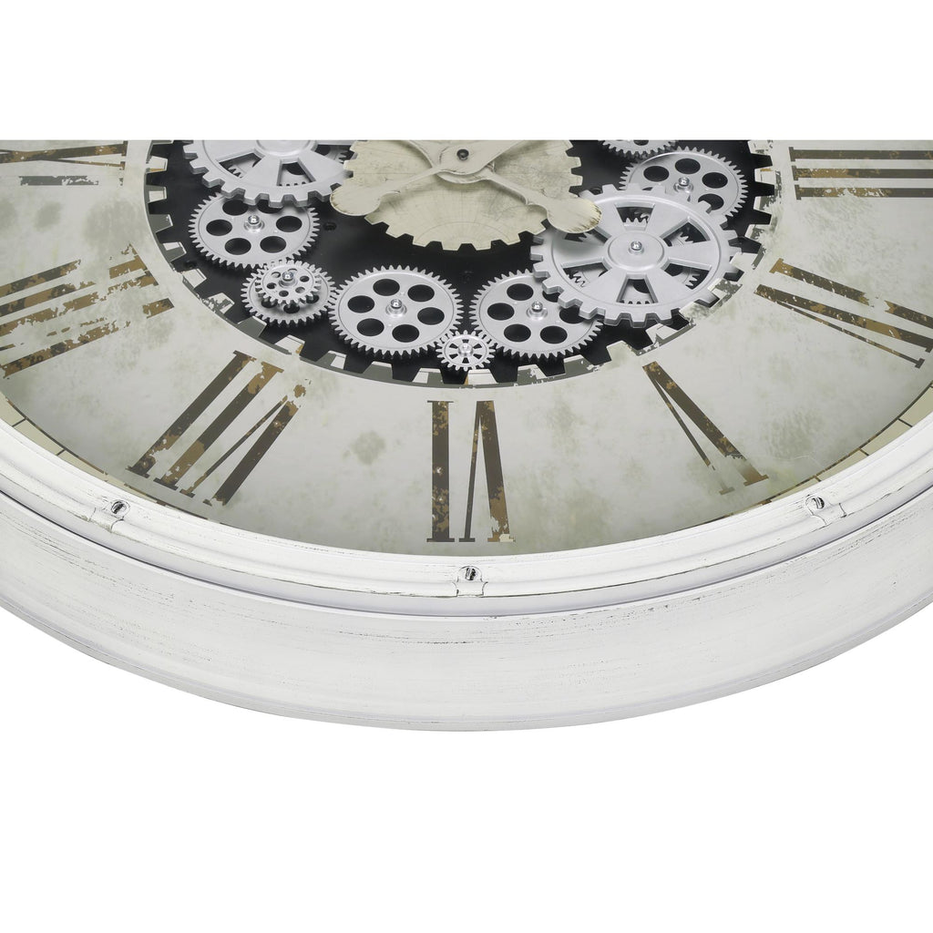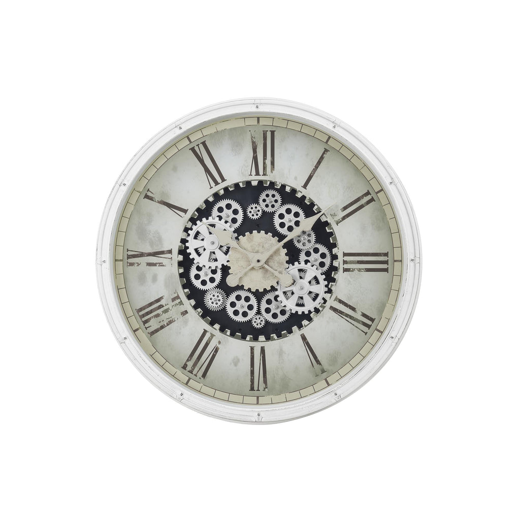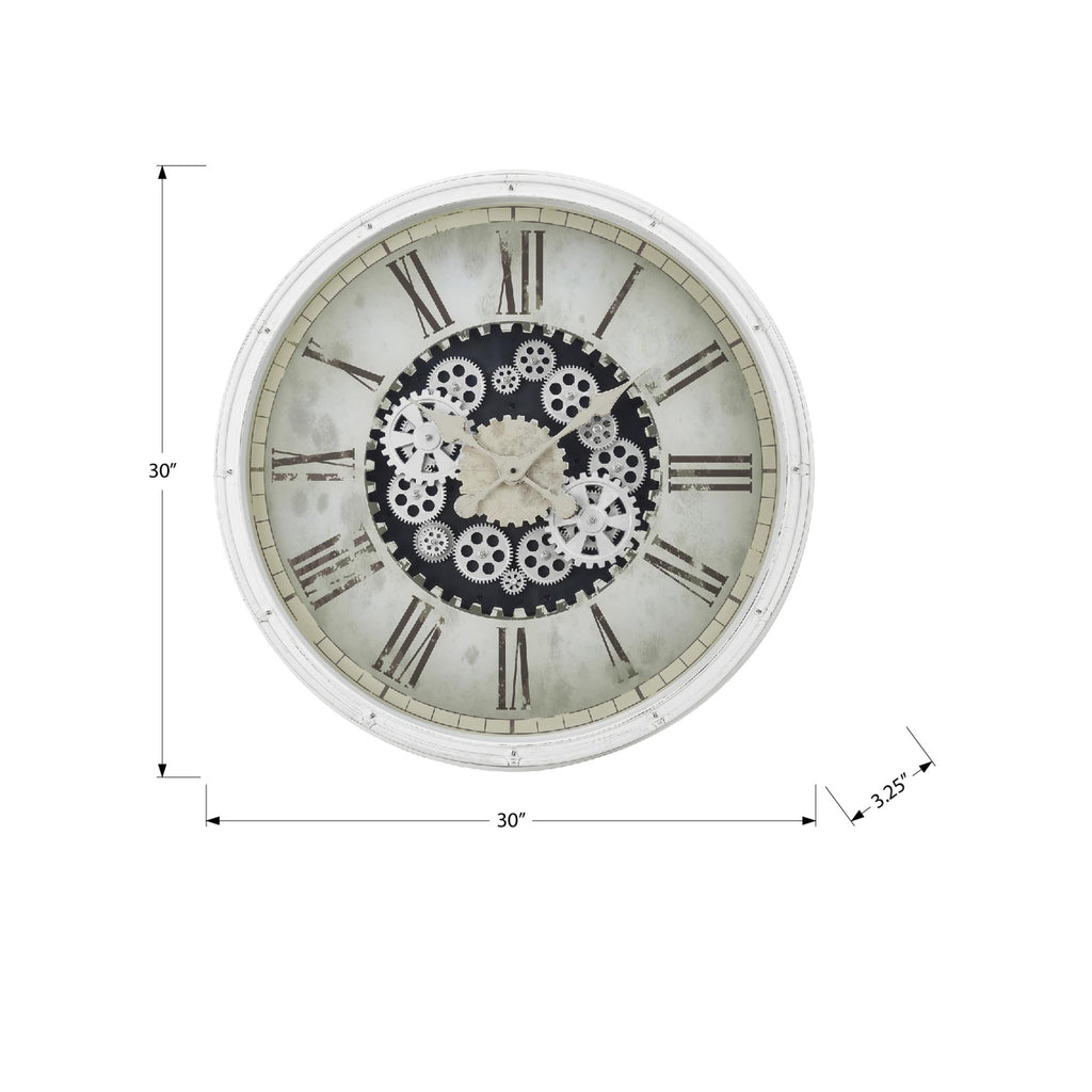 • Bring a stylish and trendy accent piece to your home decor with this large, oversized 30" round wall clock with a striking gear mechanism design in a chic white finish