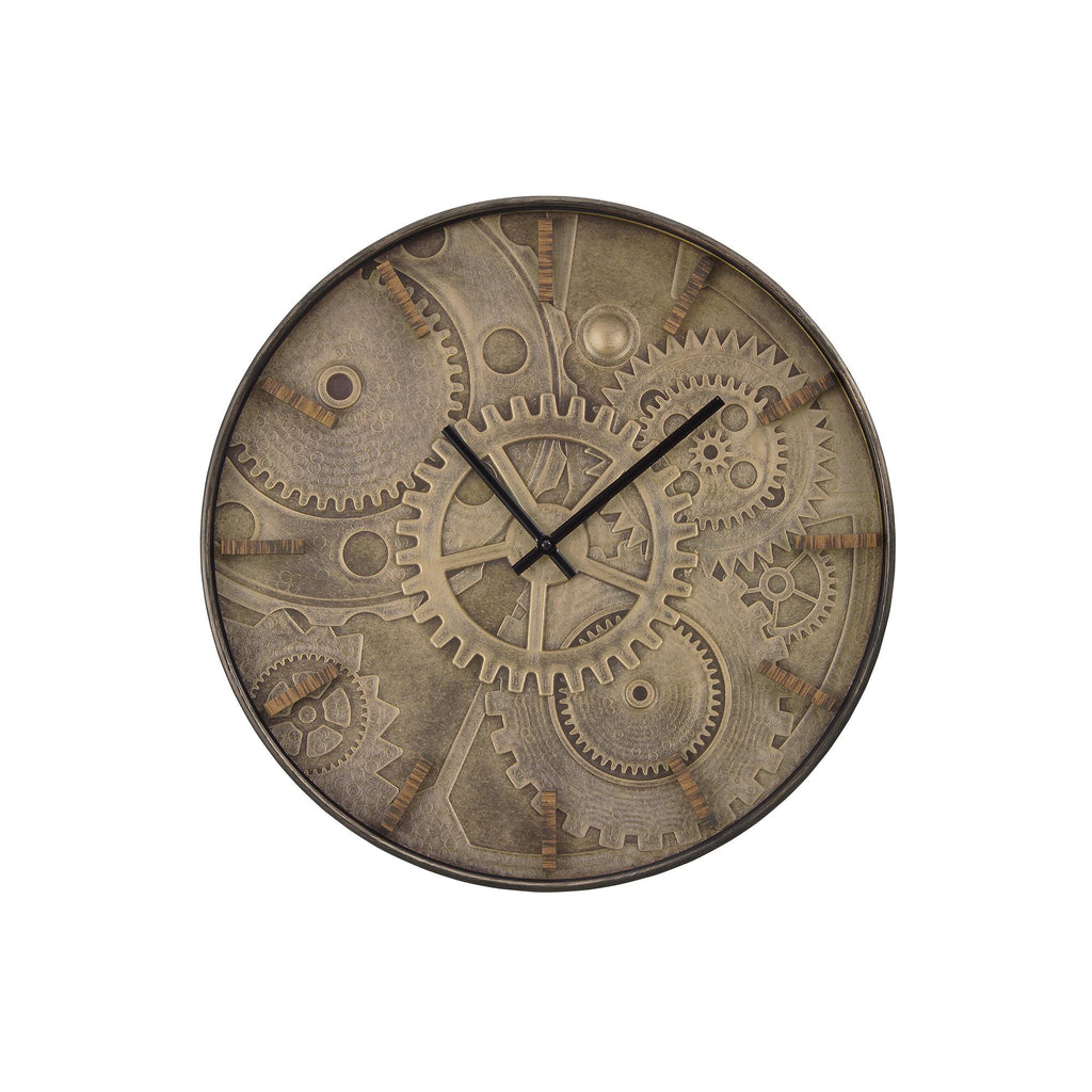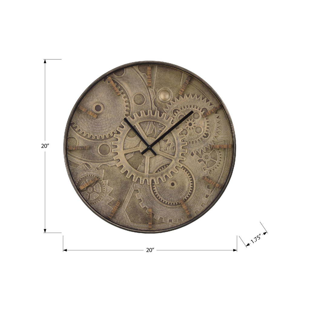 • A statement making, on-trend 20" round wall clock in a vintage-look with a printed gears background, just right for a transitional style home decor