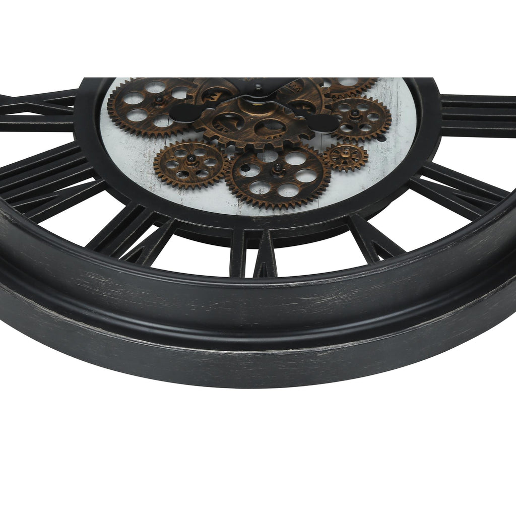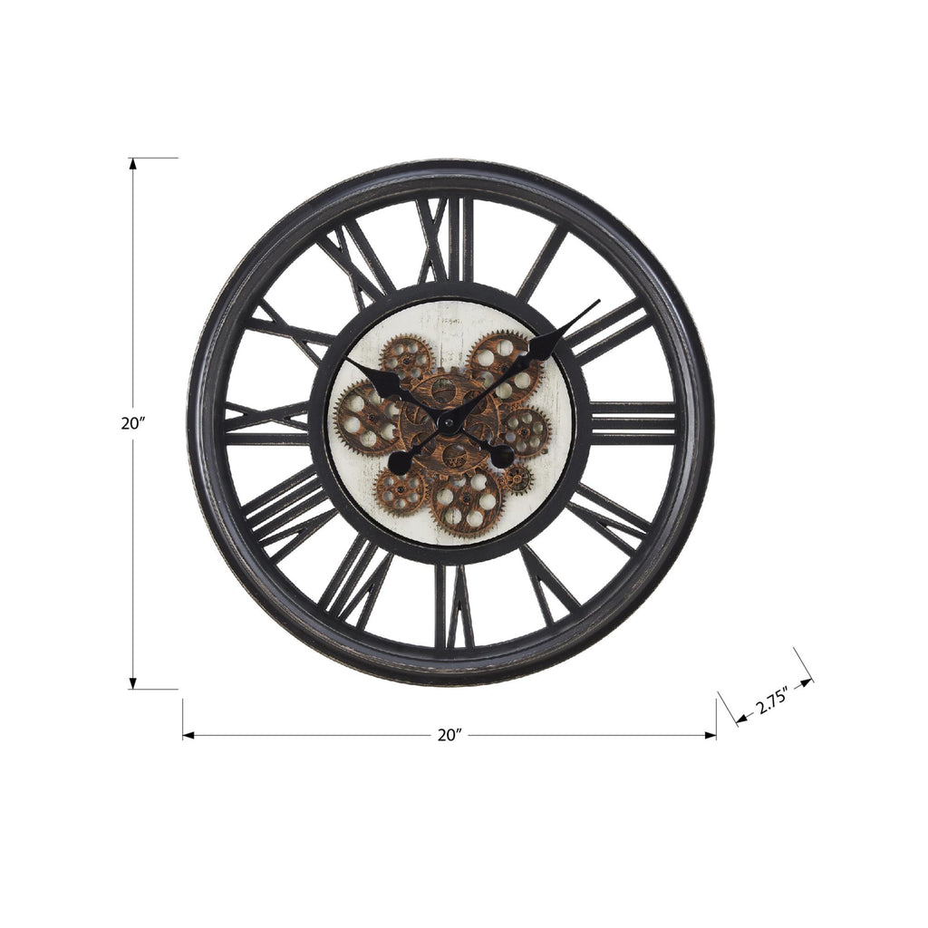 • This sophisticated and trendy 20" round wall clock in a transitional design, with a unique moving gear mechanism will be a standout in any home decor