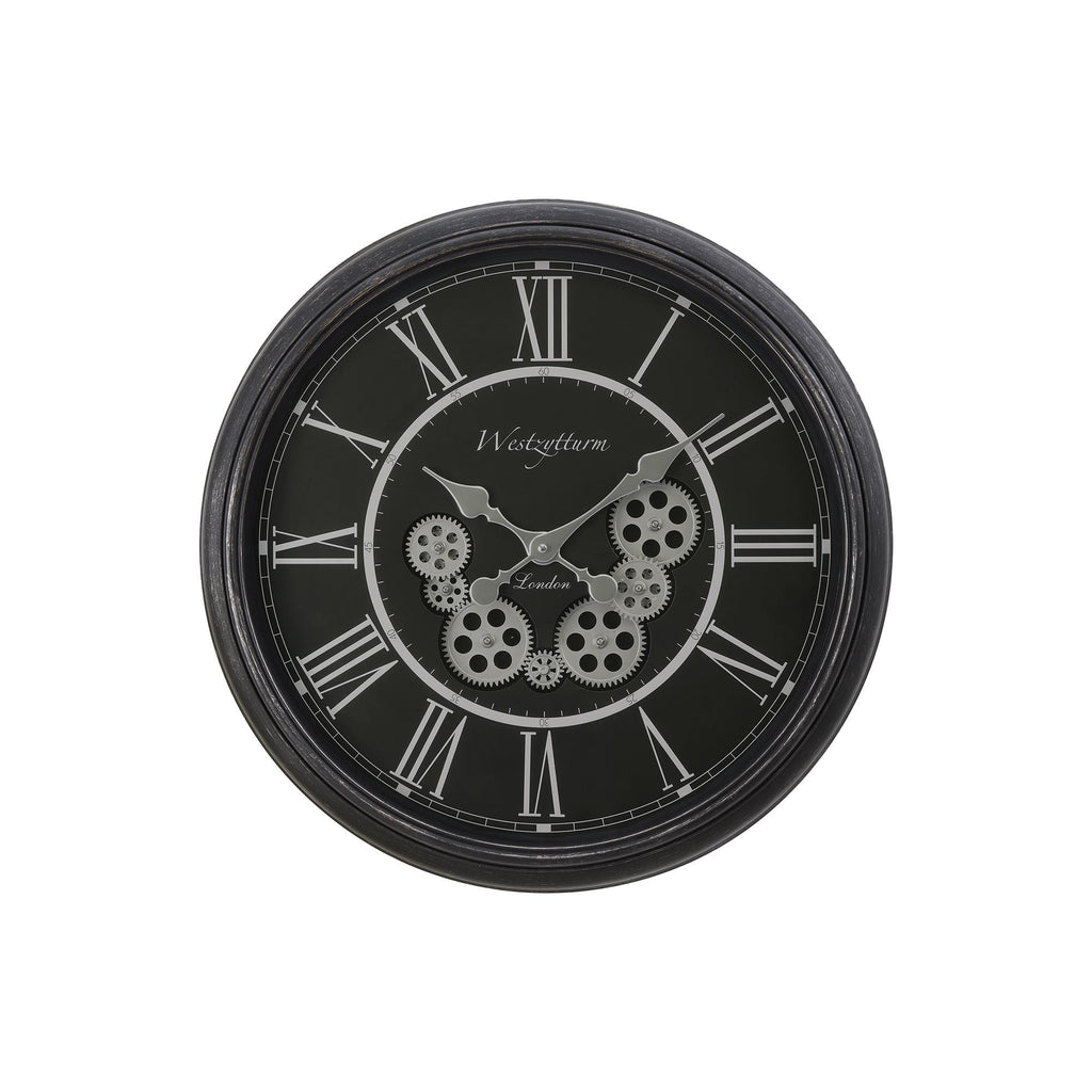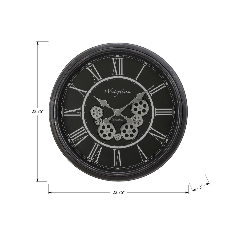• Sleek with a transitional style, this 23" round wall clock features a stunning moving gear mechanism design, for a timeless decorative accent