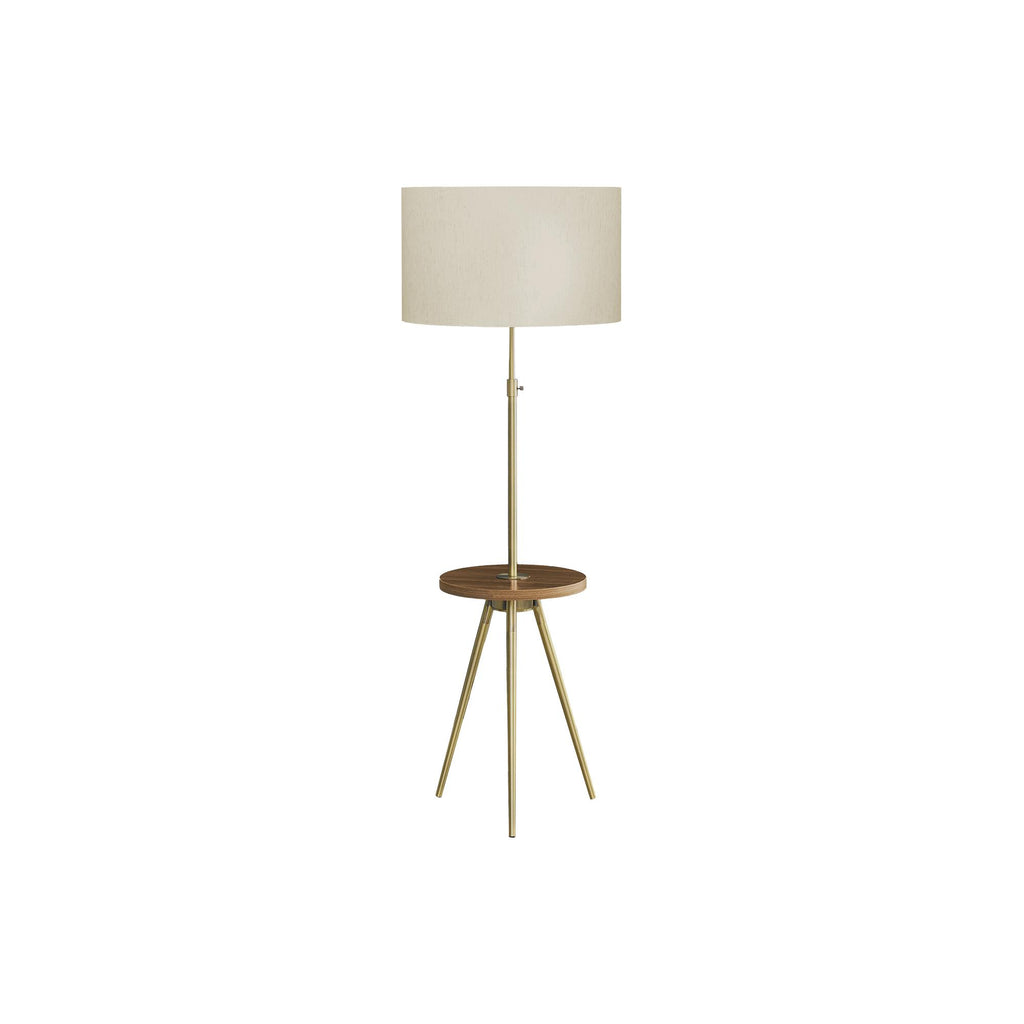 • The adjustable neck allows for customizable height to help brighten and illuminate a room, with a convenient built-in round, brown walnut laminate table shelf to set down your drink or electronic device