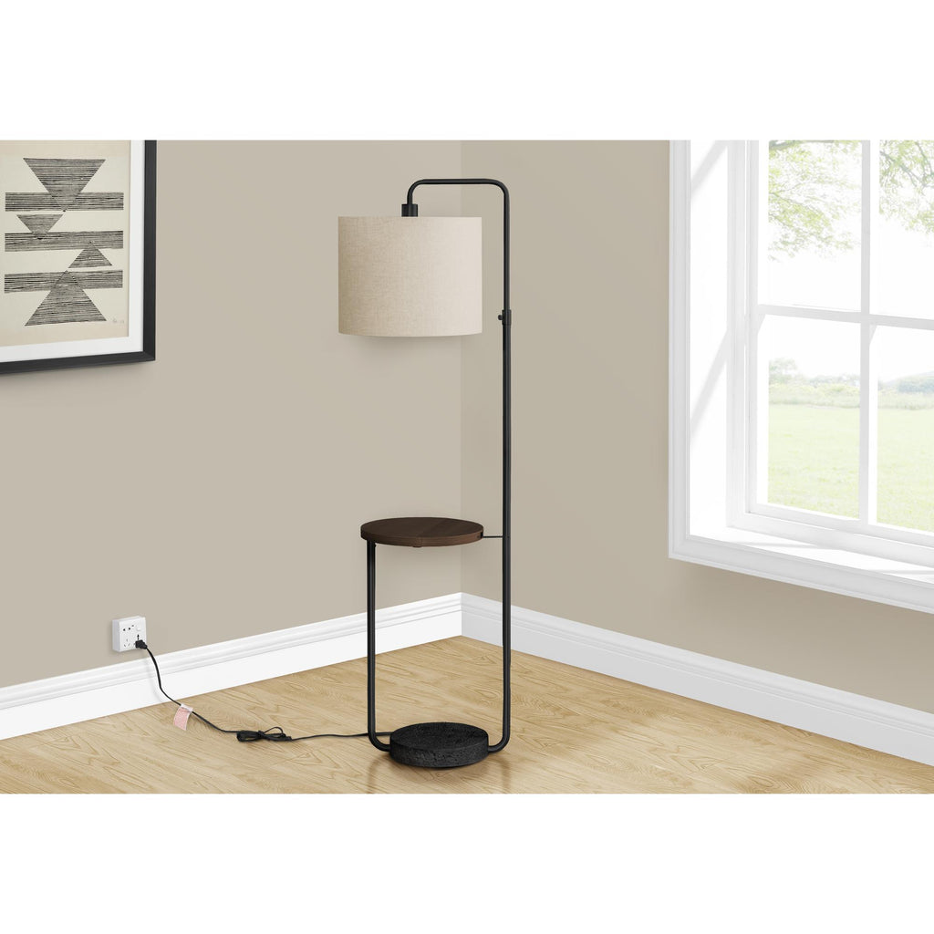 • Bring decorative style and function to your space with this on-trend contemporary 67"h floor lamp with an adjustable arm height in a sleek black metal with a black poly resin textured finish base, and topped with a modern ivory linen fabric shade