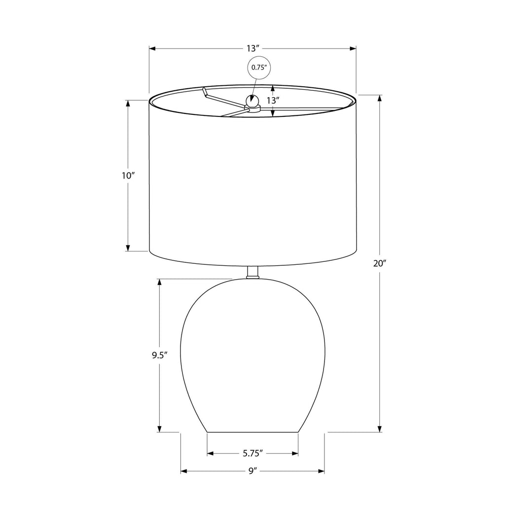 • Assembled dimensions: 13 in. L x 13 in. W x 20 in. H; base: 9 in. L x 9 in. W x 9.5 in. H; shade: 13 in. L x 13 in. W x 10 in. H