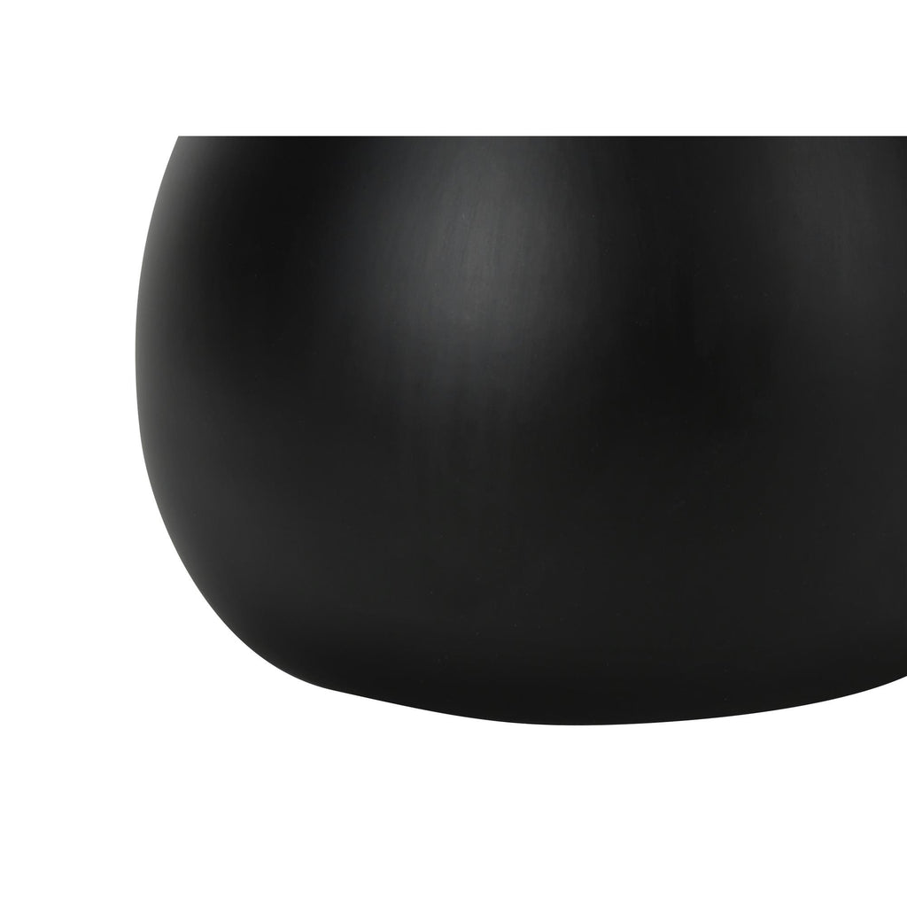 • This set of two 18"h table lamps with a stylish black metal teardrop base and ivory linen tapered drum shades add a fashionably contemporary touch to your space