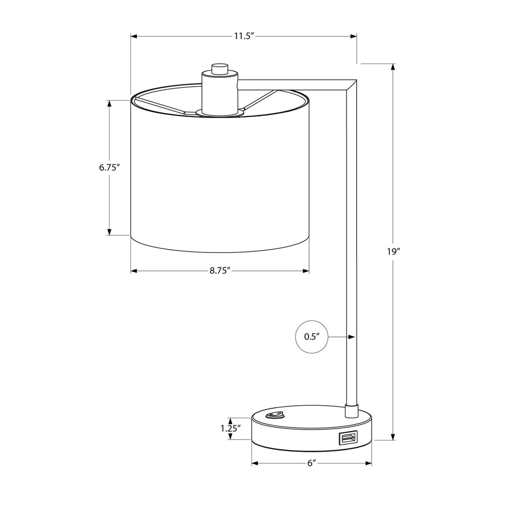 • This task lamp includes a convenient usb port to charge devices, a built-in on/off rocker switch at the base, and attached with a 6ft black cord that lights up a single bulb (not included) for a maximum output of 60W/120V
