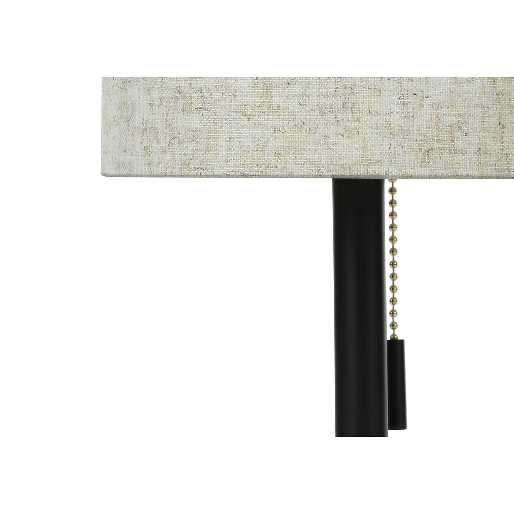 • Brighten up your office, livingroom, entryway, or bedroom with this set of 2 sleek and compact 17"h contemporary accent table lamps in a black metal finish, topped with simple beige fabric, cylinder drum shades