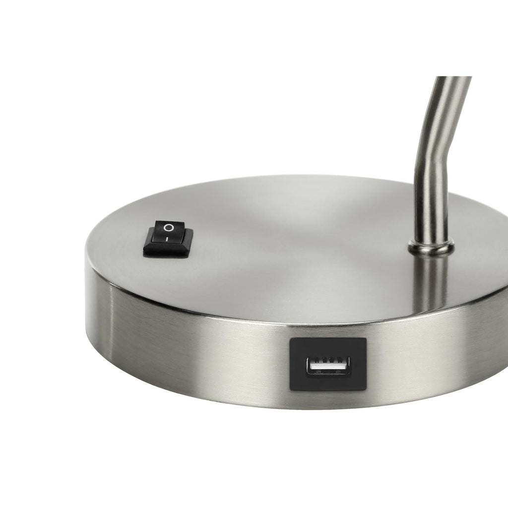 • The sturdy nickel metal base has a USB port included to easily charge your devices and a convenient on/off rocker switch for the 40W/120 bulb (not included), instantly illuminating an office, living room, or bedroom