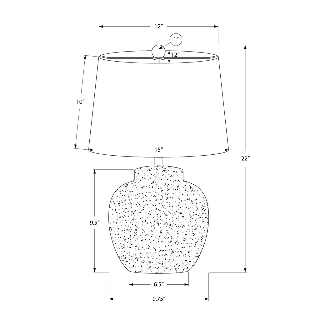 • Bring some subtle modern style to your living space with this 22"h table lamp in a classic urn shaped base with a cream concrete textured finish, a simple empire shade in ivory linen fabric, finished with a gold finial on top